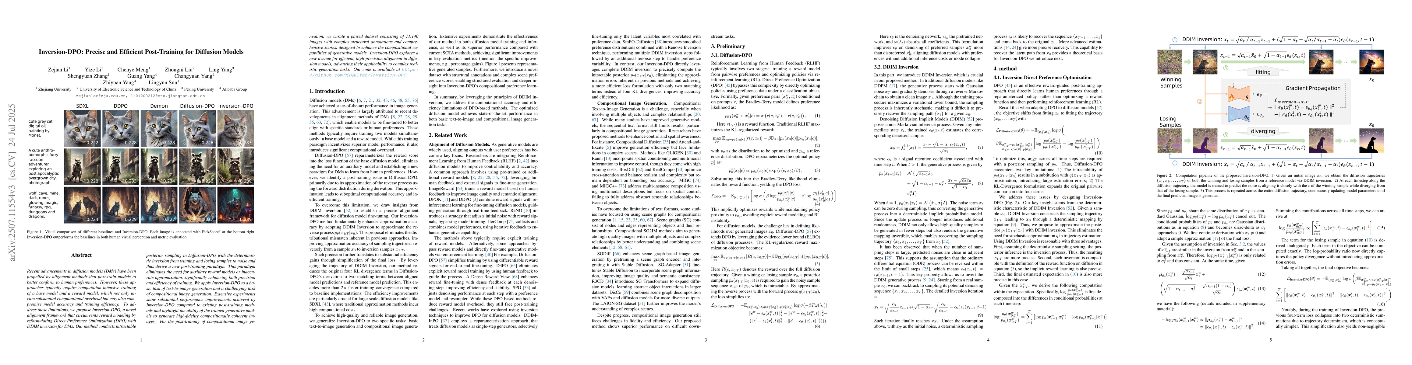 Recent advancements in diffusion models (DMs) have been propelled by alignment methods that post-train models to better conform to human preferences. However, these approaches typically require computation-intensive training of a base model and a reward model, which not only incurs substantial computational overhead but may also compromise model accuracy and training efficiency. To address these limitations, we propose Inversion-DPO, a novel alignment framework that circumvents reward modeling by reformulating Direct Preference Optimization (DPO) with DDIM inversion for DMs. Our method conducts intractable posterior sampling in Diffusion-DPO with the deterministic inversion from winning and losing samples to noise and thus derive a new post-training paradigm. This paradigm eliminates the need for auxiliary reward models or inaccurate appromixation, significantly enhancing both precision and efficiency of training. We apply Inversion-DPO to a basic task of text-to-image generation and a challenging task of compositional image generation. Extensive experiments show substantial performance improvements achieved by Inversion-DPO compared to existing post-training methods and highlight the ability of the trained generative models to generate high-fidelity compositionally coherent images. For the post-training of compostitional image geneation, we curate a paired dataset consisting of 11,140 images with complex structural annotations and comprehensive scores, designed to enhance the compositional capabilities of generative models. Inversion-DPO explores a new avenue for efficient, high-precision alignment in diffusion models, advancing their applicability to complex realistic generation tasks. Our code is available at https://github.com/MIGHTYEZ/Inversion-DPO
