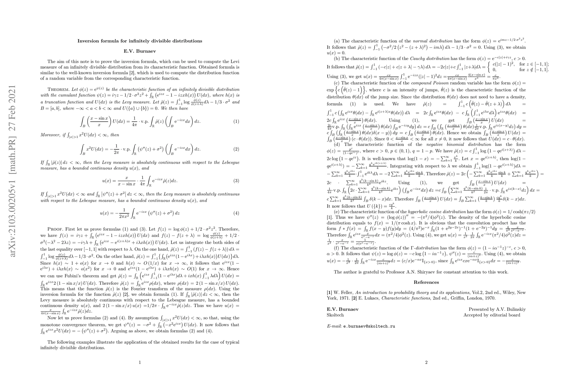 The paper proves an inversion formula to compute a distribution's Levi measure from its characteristic function, similar to the known inversion formula for distribution functions.