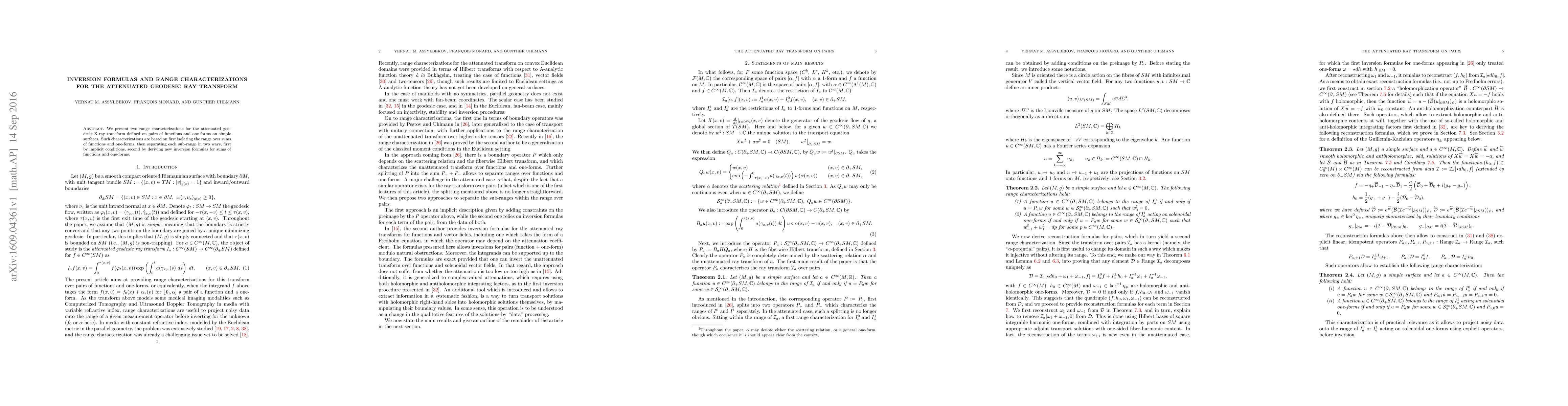 We present two range characterizations for the attenuated geodesic X-ray transform defined on pairs of functions and one-forms on simple surfaces. Such characterizations are based on first isolating the range over sums of functions and one-forms, then separating each sub-range in two ways, first by implicit conditions, second by deriving new inversion formulas for sums of functions and one-forms.