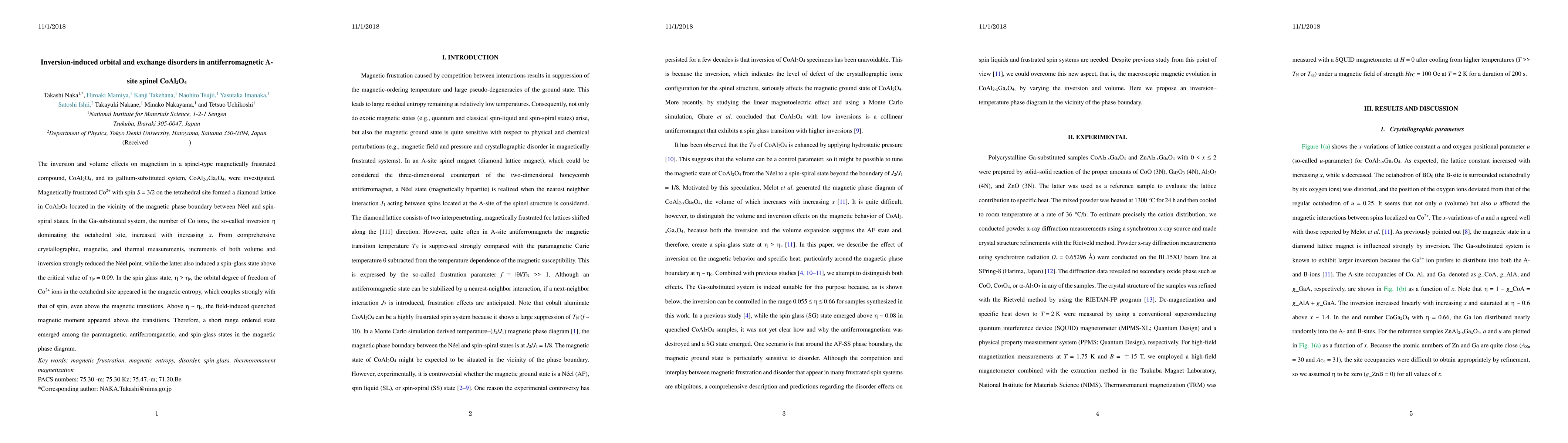The inversion and volume effects on magnetism in a spinel-type magnetically frustrated compound, CoAl2O4, and its gallium-substituted system, CoAl2-xGaxO4, were investigated. Magnetically frustrated Co2+ with spin S = 3/2 on the tetrahedral site formed a diamond lattice in CoAl2O4 located in the vicinity of the magnetic phase boundary between Neel and spin-spiral states. In the Ga-substituted system, the number of Co ions, the so-called inversion h dominating the octahedral site, increased with increasing x. From comprehensive crystallographic, magnetic, and thermal measurements, increments of both volume and inversion strongly reduced the Neel point, while the latter also induced a spin-glass state above the critical value of hc = 0.09. In the spin glass state, h > hc, the orbital degree of freedom of Co2+ ions in the octahedral site appeared in the magnetic entropy, which couples strongly with that of spin, even above the magnetic transitions. Above h ~ hc, the field-induced quenched magnetic moment appeared above the transitions. Therefore, a short range ordered state emerged among the paramagnetic, antiferromganetic, and spin-glass states in the magnetic phase diagram.