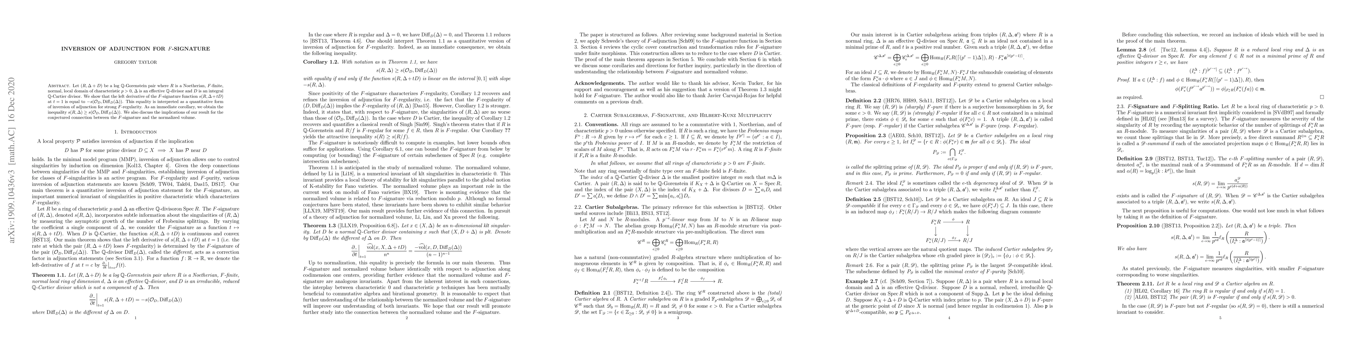 This paper establishes an inversion of adjunction for $F$-signature, showing that the left derivative of $F$-signature at $t=1$ equals $-s(\mathcal{O}_D, \mathrm{Diff}_D(\Delta))$, and derives an inequality $s(R,\Delta) \geq s(\mathcal{O}_D, \mathrm{Diff}_D(\Delta))$, highlighting the connection between $F$-signature and strong $F$-regularity.