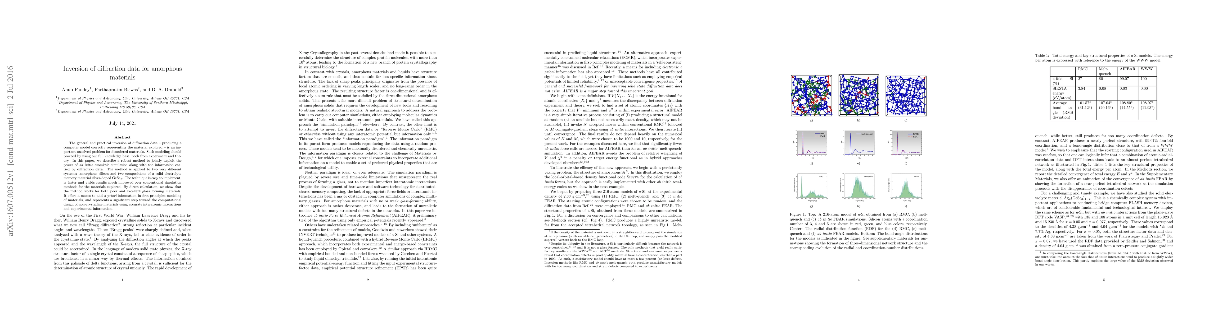 This research represents a significant step toward computational design of non-crystalline materials by integrating experimental information with first-principles modeling, offering a practical and robust method for structural inversion of diffraction data in amorphous materials.
