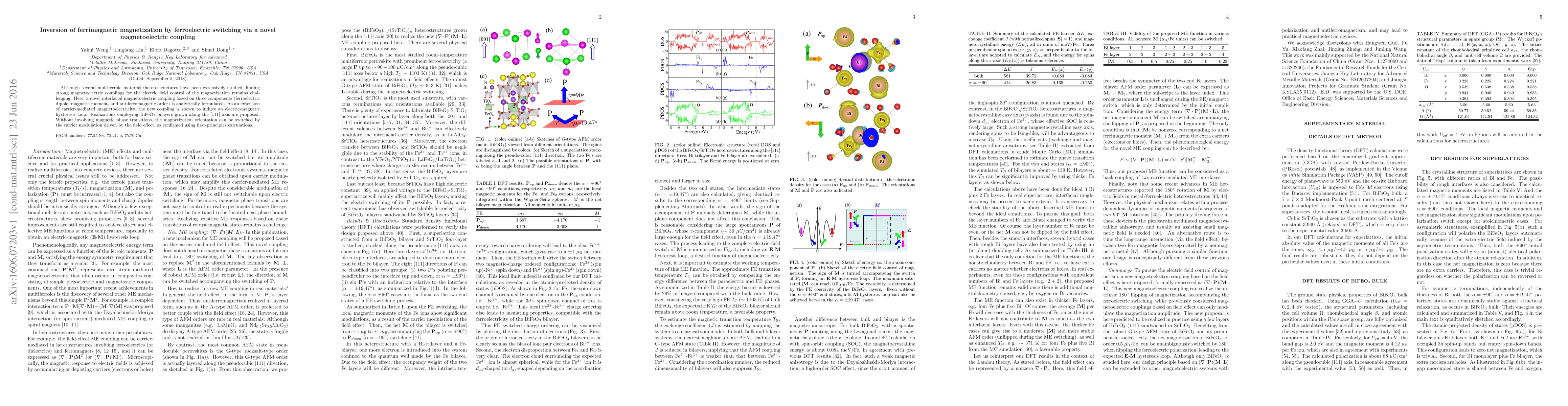 This paper proposes a novel magnetoelectric coupling mechanism involving ferroelectric dipoles, magnetic moments, and antiferromagnetic order to control ferrimagnetic magnetization via electric fields. The new coupling induces an electric-magnetic hysteresis loop and enables magnetization inversion in BiFeO$_3$ bilayers without magnetic phase transitions, as demonstrated through first-principles calculations.