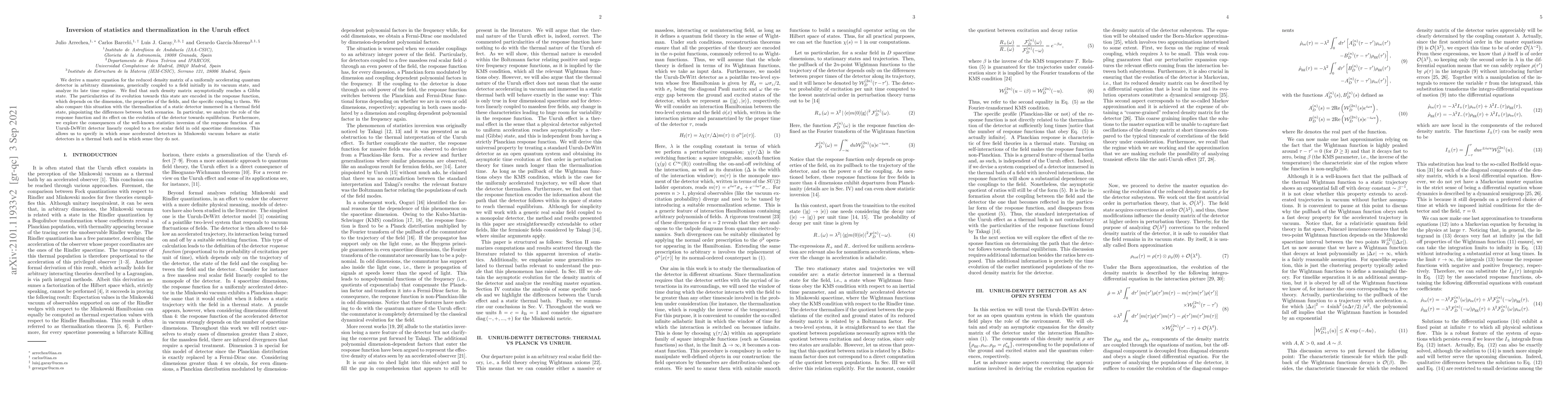 This paper derives a master equation for an accelerating quantum detector's reduced density matrix, showing its late-time asymptotic behavior towards a Gibbs state. It contrasts the thermalization process of an accelerating detector with that of a static detector in a thermal field, highlighting differences in their response functions and the implications of the statistics inversion in odd spacetime dimensions.