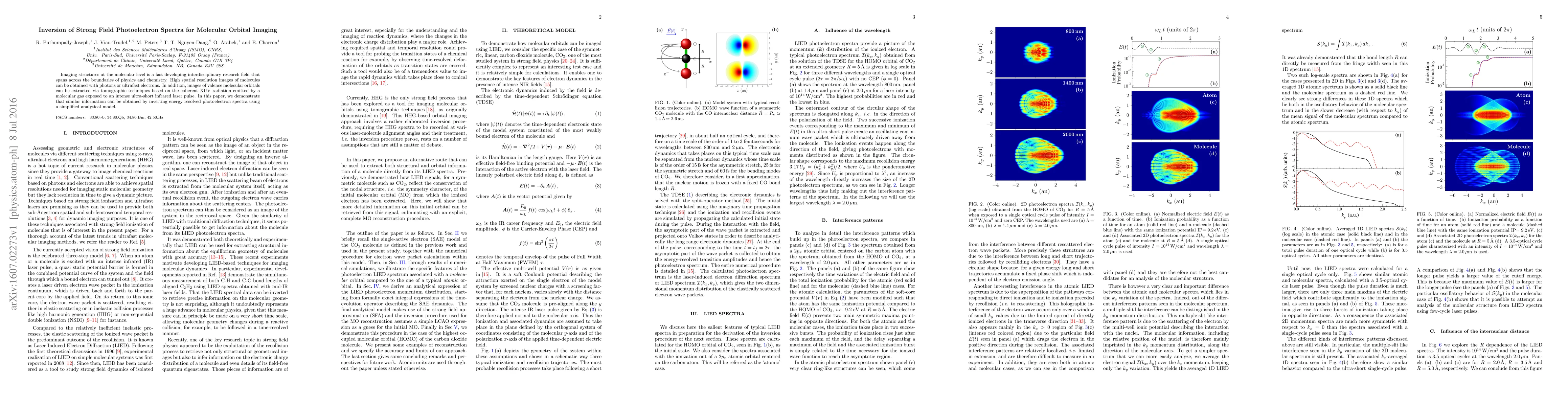 This paper presents a method for imaging molecular orbitals by inverting strong field photoelectron spectra using a simplified analytical model, providing an alternative to traditional tomographic techniques based on coherent XUV radiation. The approach aims to achieve high spatial resolution images of molecular structures at the molecular level.