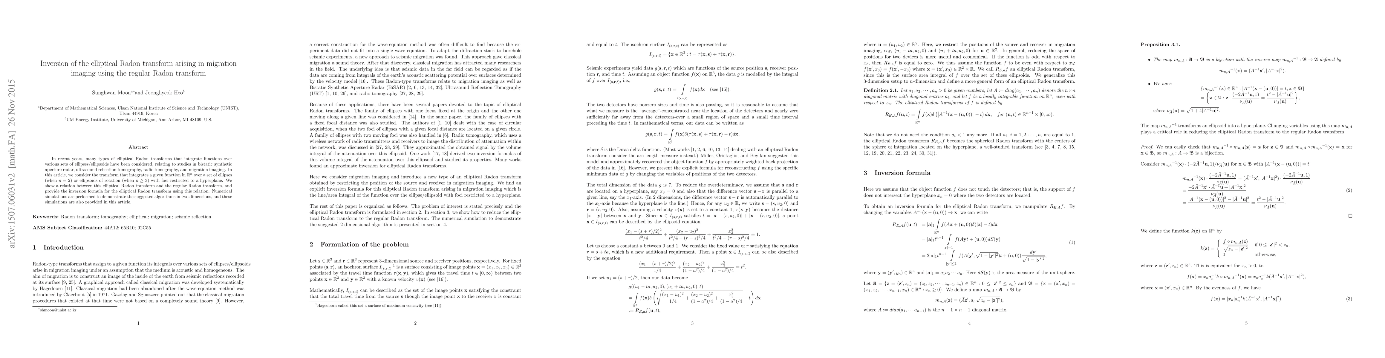 This paper explores the inversion of the elliptical Radon transform, which integrates functions over ellipses/ellipsoids, using the regular Radon transform. It establishes a connection between the two transforms and provides an inversion formula, demonstrating the method with numerical simulations in two dimensions.