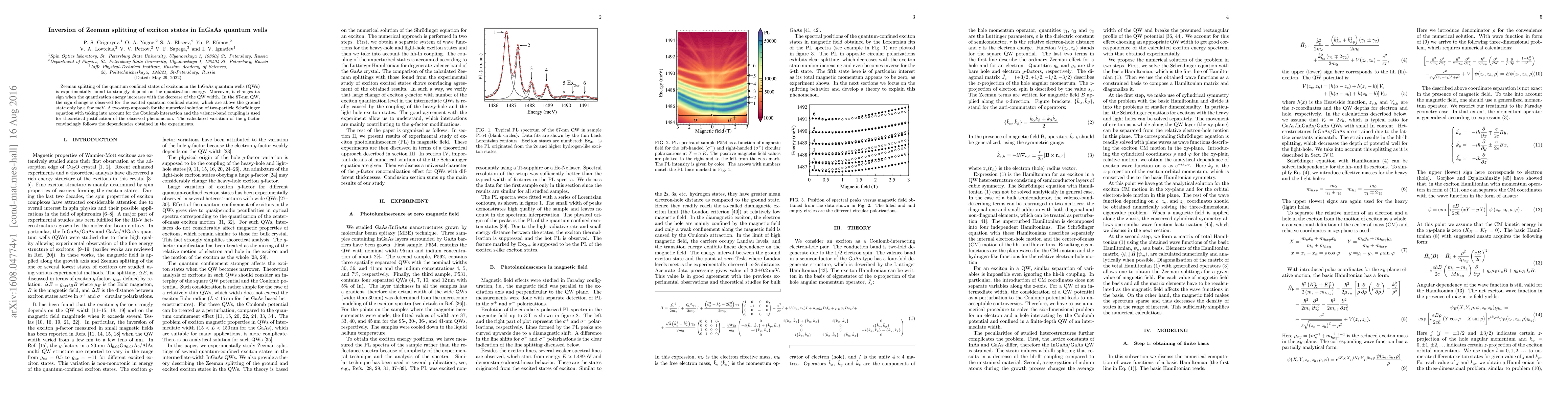 Researchers found that Zeeman splitting of exciton states in InGaAs quantum wells changes sign as the quantization energy increases with decreasing well width, contradicting previous theories. A two-step approach used to solve the two-particle Schrodinger equation successfully predicts this phenomenon.