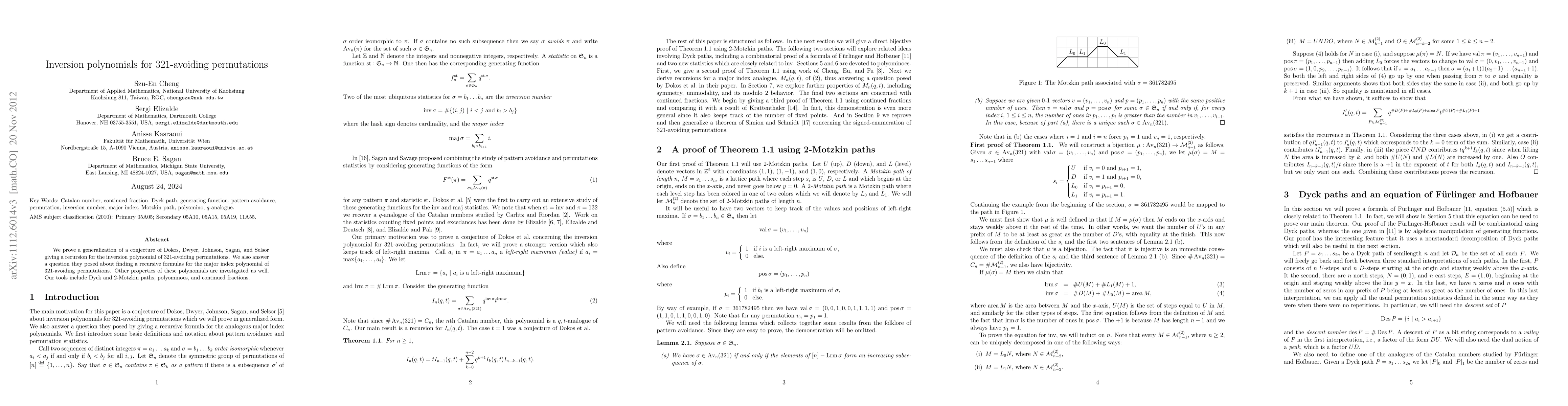 This paper generalizes a conjecture to provide a recursive formula for the inversion polynomial of 321-avoiding permutations and addresses a related question about the major index polynomial. The study employs tools like Dyck and 2-Motzkin paths, polyominoes, and continued fractions to explore additional properties of these polynomials.