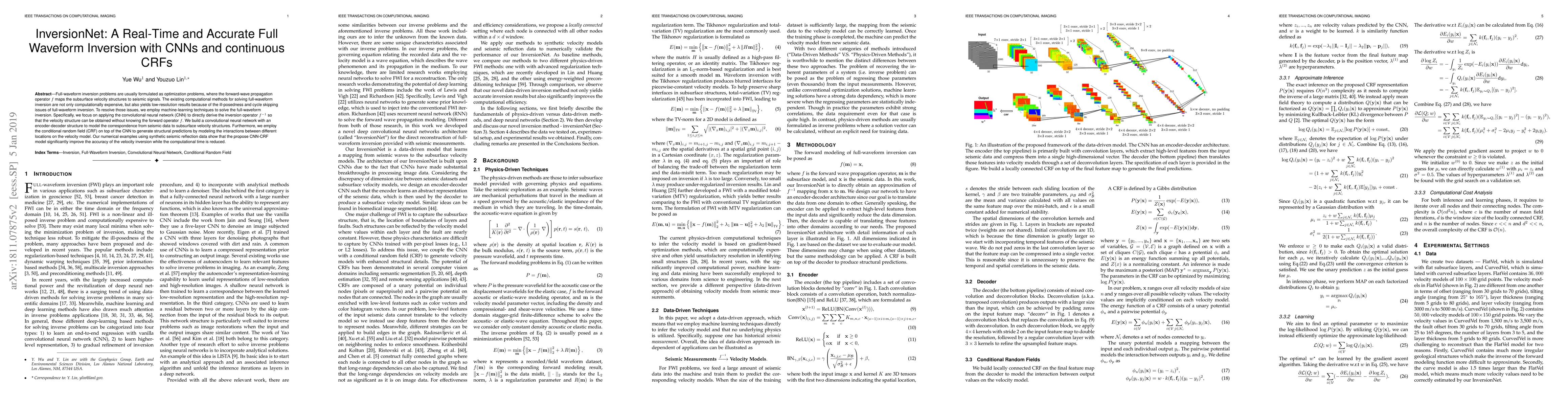 This research introduces a novel approach to full-waveform inversion using convolutional neural networks (CNNs) and conditional random fields (CRFs) to enhance both accuracy and computational efficiency. The proposed method directly derives the inversion operator, bypassing the need for the forward operator, and demonstrates significant improvements in velocity inversion results with reduced computational time.