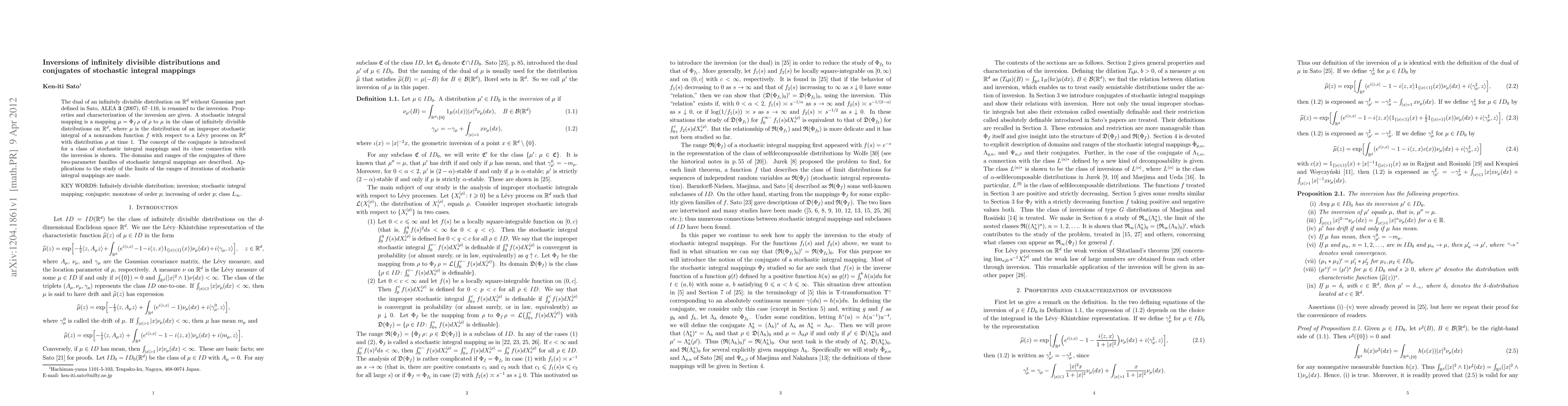 This paper explores the properties and characterization of inversions of infinitely divisible distributions without Gaussian components, and introduces the concept of conjugates for stochastic integral mappings. It also examines the domains and ranges of conjugates for specific stochastic integral mappings and their applications to the limits of iterations.