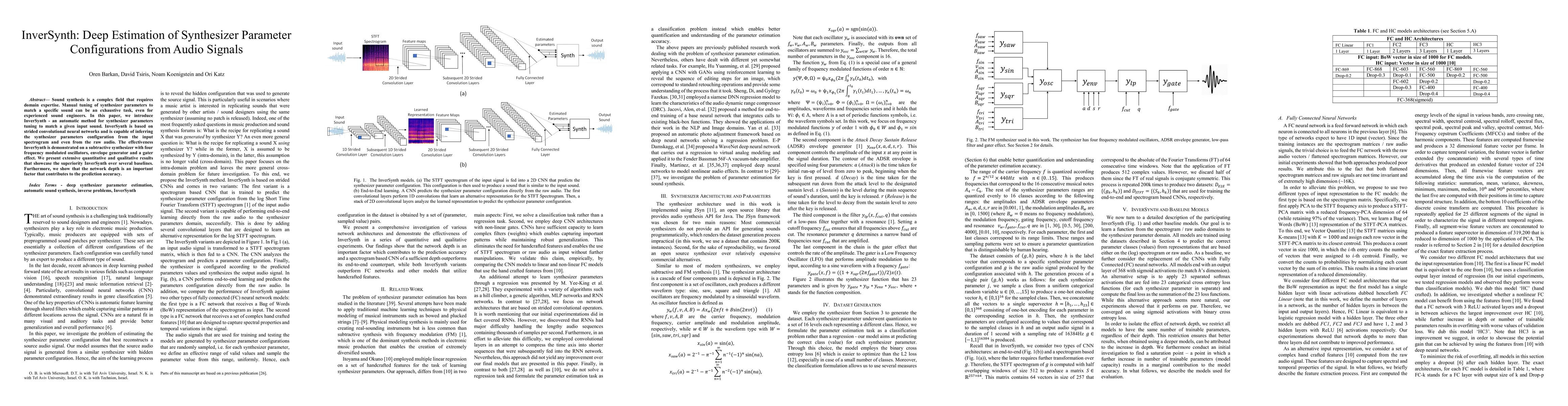 InverSynth automates the tuning of synthesizer parameters to match a given sound using strided convolutional neural networks, demonstrating superior performance over baselines and highlighting the importance of network depth for accuracy.