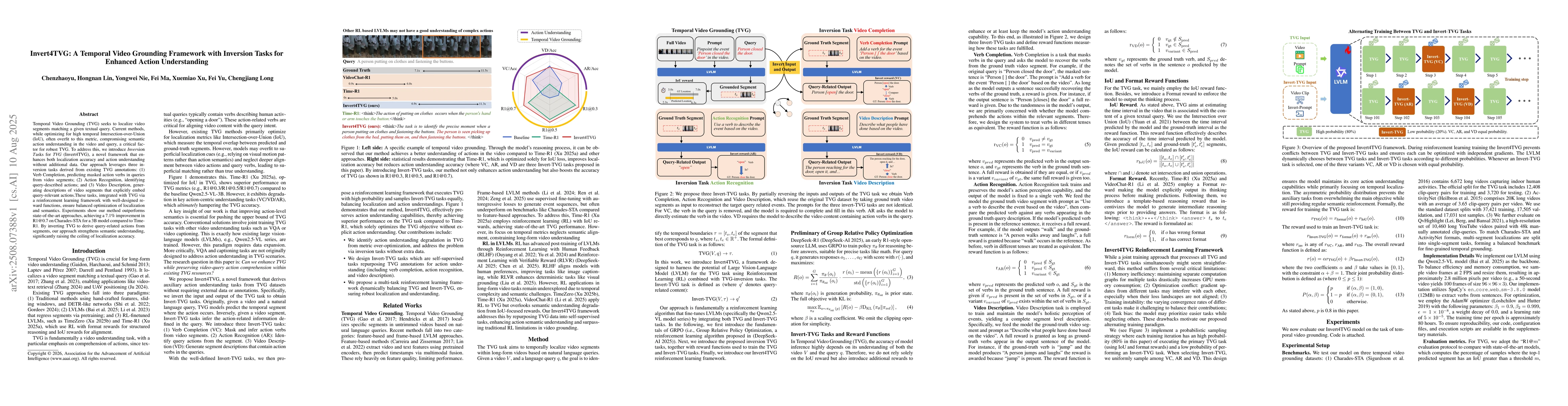 The research introduces Invert4TVG, a framework that integrates three inversion tasks (Verb Completion, Action Recognition, Video Description) with a reinforcement learning approach to enhance both localization accuracy and semantic action understanding in Temporal Video Grounding (TVG). These tasks utilize existing TVG annotations and are optimized with well-designed reward functions.