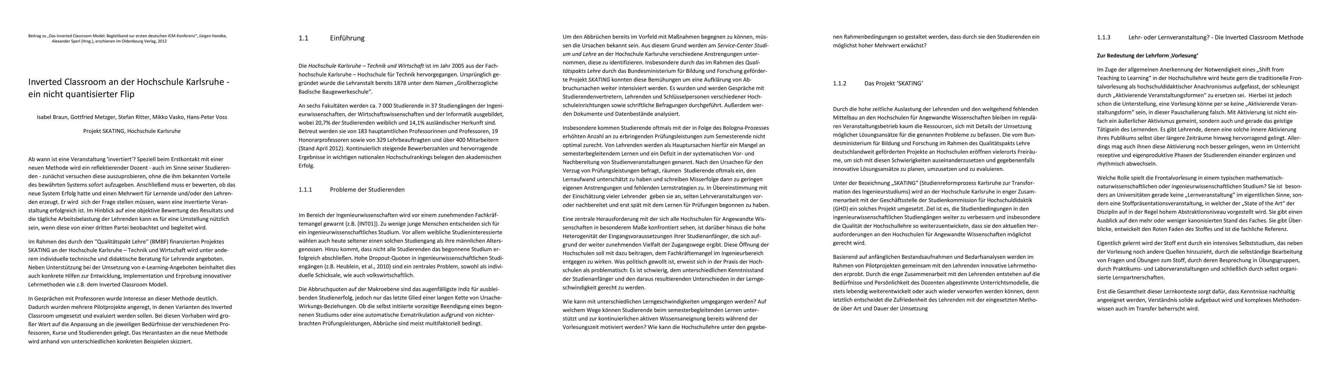 When does a course count as 'inverted'? When first faced with a new teaching method, deliberate lectures may want to test it without abandoning the advantages of the established method. Aftes the experiment they have to evaluate additional benefits of the new system for teacher and student. Considering the high workload of lecturers, the help of a third party may be useful to obtain an objective assessment of the results during such a transition. At the University of Applied Sciences 'Hochschule Karlsruhe - Technik und Wirtschaft' in Germany, the SKATING project, funded by the German Federal Ministry of Education and Research (BMBF), offers among other things individual technical and didactic advice. This includes practical help with the development, implementation and testing of innovative lecture formats like the Inverted Classroom Method (also known as flipped class). When Professors at the University stated their interest in this approach, varying teaching projects on its implementation and evaluation were initiated. The main focus was the adaption of the method to the individual needs and wishes of professors, course and students. Several examples of a gradual lecture transformation are presented.