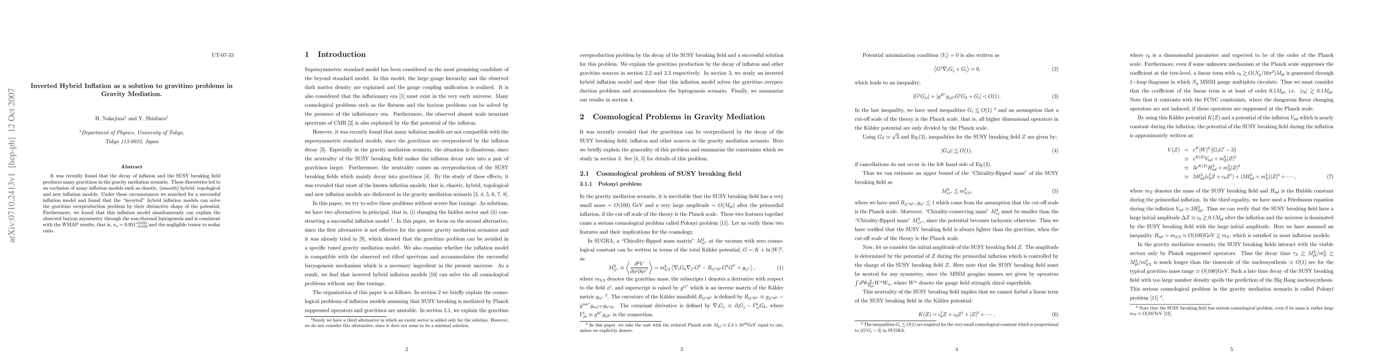 This paper proposes that inverted hybrid inflation models can resolve the gravitino overproduction issue in gravity mediation scenarios by their unique potential shape. Additionally, these models are consistent with observed baryon asymmetry via non-thermal leptogenesis and align with WMAP results for scalar spectral index and tensor-to-scalar ratio.