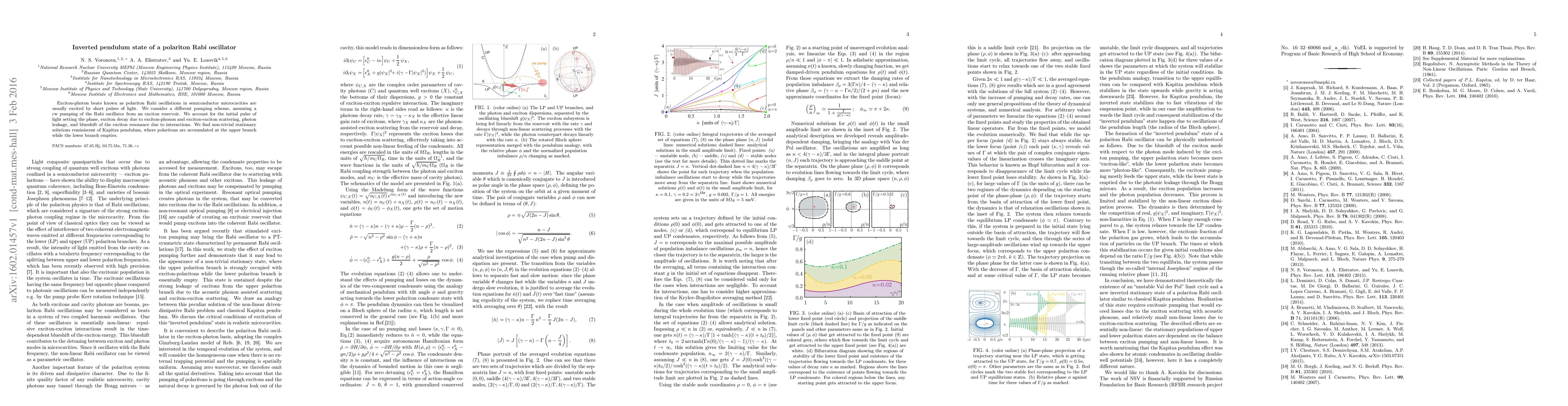 Exciton-photon beats known as polariton Rabi oscillations in semiconductor microcavities are usually excited by short pulses of light. We consider a different pumping scheme, assuming a cw pumping of the Rabi oscillator from an exciton reservoir. We account for the initial pulse of light setting the phase, exciton decay due to exciton-phonon and exciton-exciton scattering, photon leakage, and blueshift of the exciton resonance due to interactions. We find non-trivial stationary solutions reminiscent of Kapitza pendulum, where polaritons are accumulated at the upper branch while the lower branch empties.