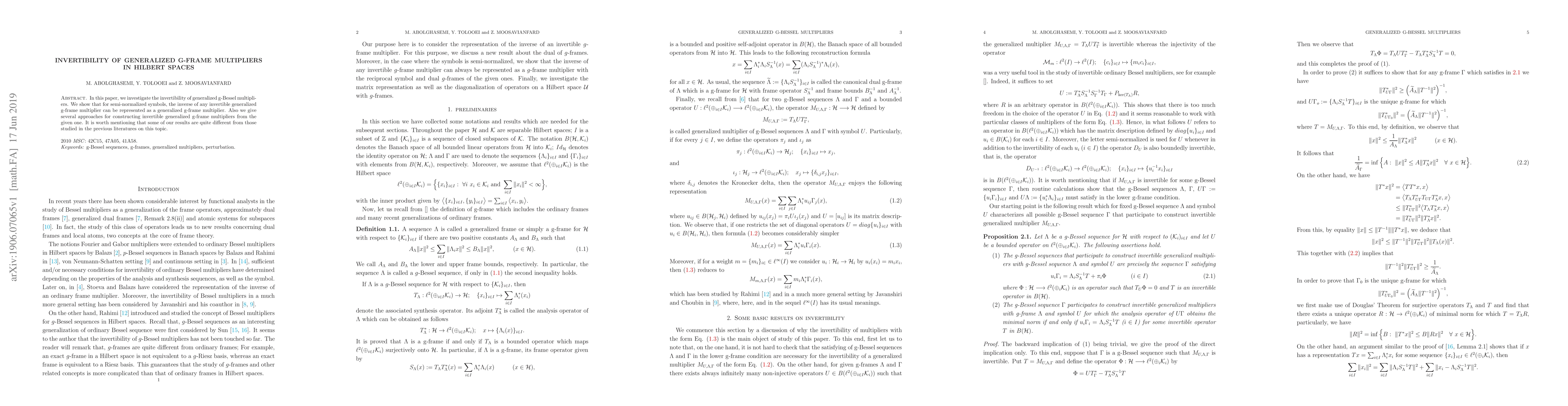 This paper explores the invertibility of generalized g-Bessel multipliers in Hilbert spaces, demonstrating that the inverse of an invertible multiplier can itself be expressed as a generalized g-frame multiplier. It also provides several methods for constructing new invertible multipliers from existing ones.