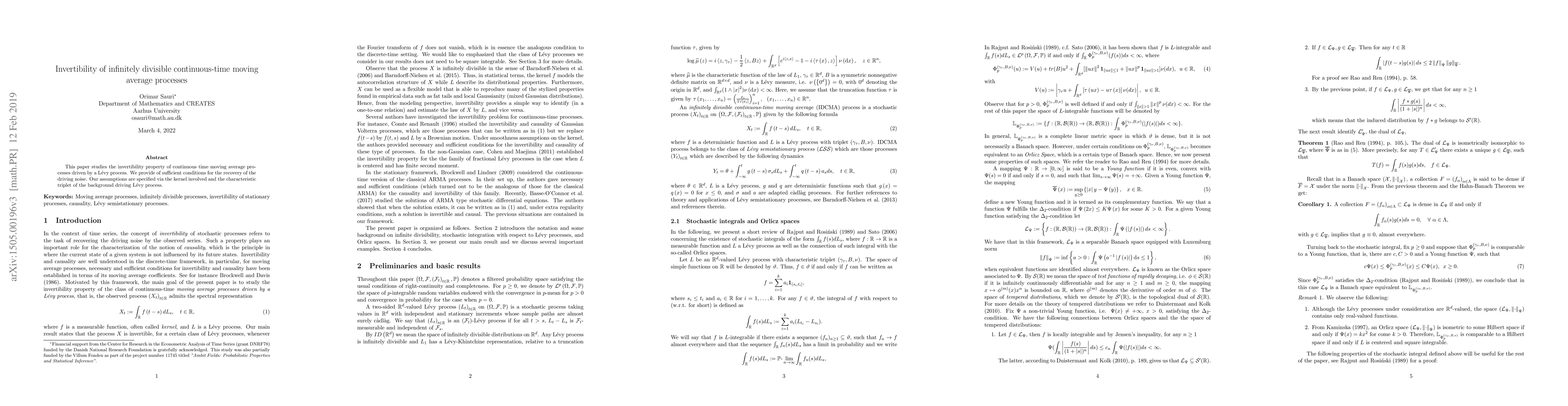 This paper examines the invertibility of continuous-time moving average processes driven by a Lévy process, providing sufficient conditions for recovering the driving noise based on the kernel and the characteristic triplet of the Lévy process.