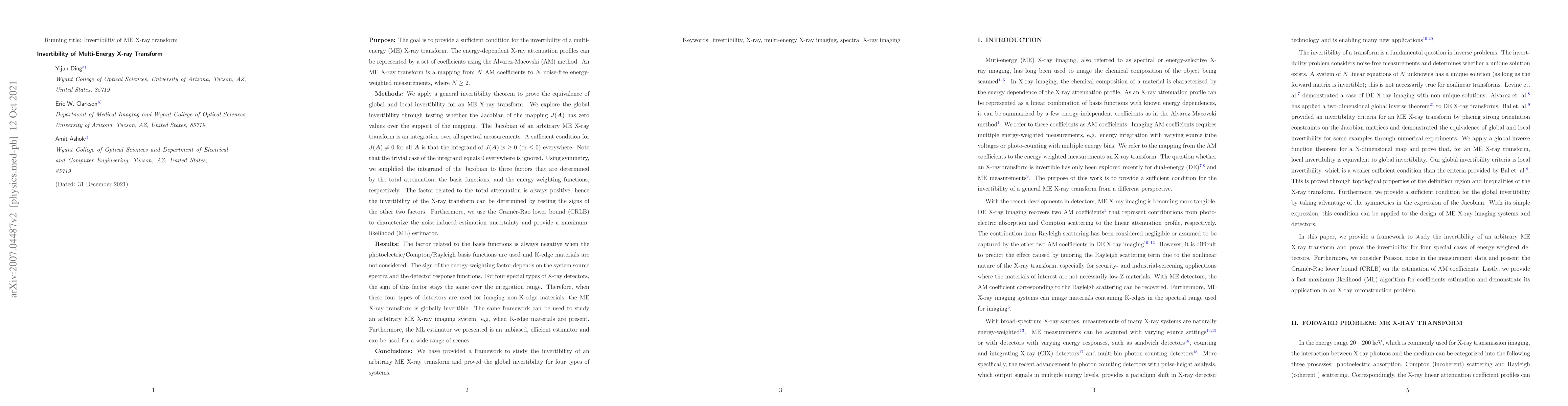 Researchers have developed a framework to determine the invertibility of multi-energy X-ray transforms, providing conditions for global invertibility in four types of systems, with implications for image reconstruction and estimation uncertainty.