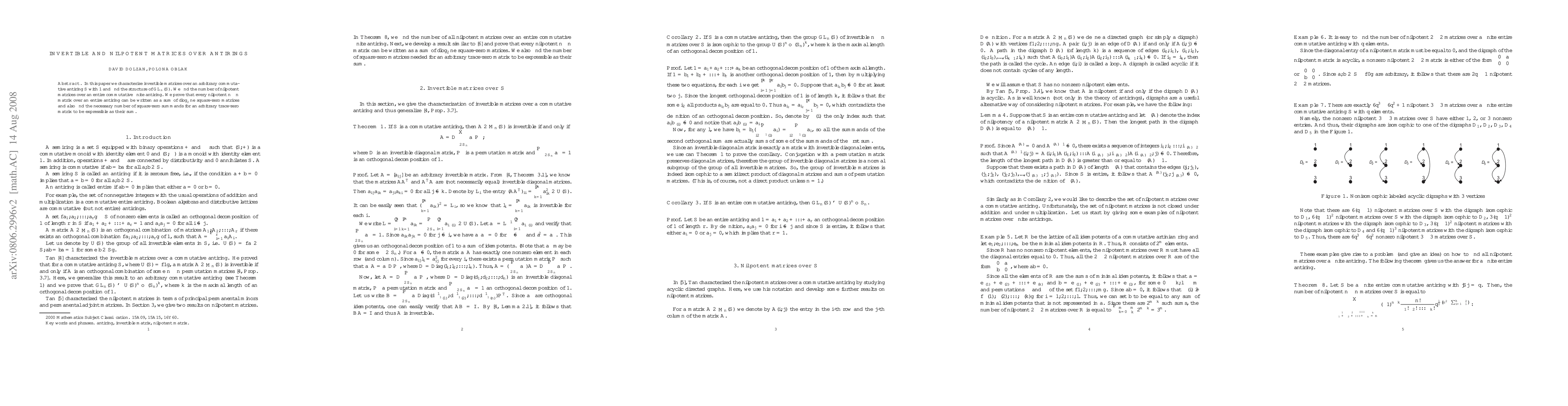 In this paper we characterize invertible matrices over an arbitrary commutative antiring S and find the structure of GL_n (S). We find the number of nilpotent matrices over an entire commutative finite antiring. We prove that every nilpotent $n \times n$ matrix over an entire antiring can be written as a sum of $\lceil \log_2 n \rceil$ square-zero matrices and also find the necessary number of square-zero summands for an arbitrary trace-zero matrix to be expressible as their sum.