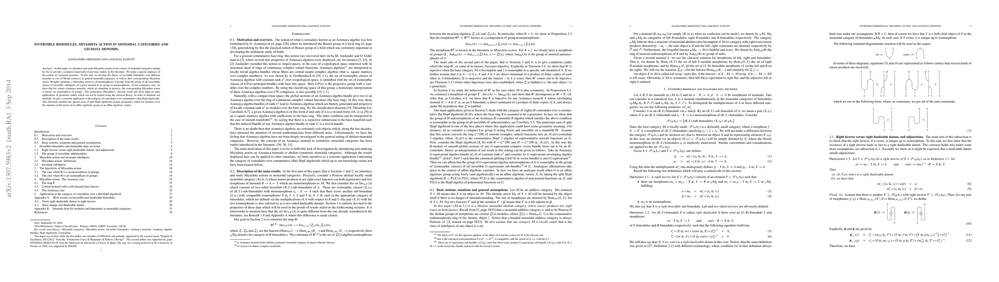 In this paper we introduce and study Miyashita action in the context of monoidal categories aiming by this to provide a common framework of previous studies in the literature. We make a special emphasis of this action on Azumaya monoids. To this end, we develop the theory of invertible bimodules over different monoids (a sort of Morita contexts) in general monoidal categories as well as their corresponding Miyashita action. Roughly speaking, a Miyashita action is a homomorphism of groups from the group of all isomorphic classes of invertible subobjects of a given monoid to its group of automorphisms. In the symmetric case, we show that for certain Azumaya monoids, which are abundant in practice, the corresponding Miyashita action is always an isomorphism of groups. This generalizes Miyashita's classical result and sheds light on other applications of geometric nature which can not be treated using the classical theory. In order to illustrate our methods, we give a concrete application to the category of comodules over commutative (flat) Hopf algebroids. This obviously includes the special cases of split Hopf algebroids (action groupoids), which for instance cover the situation of the action of an affine algebraic group on an affine algebraic variety.