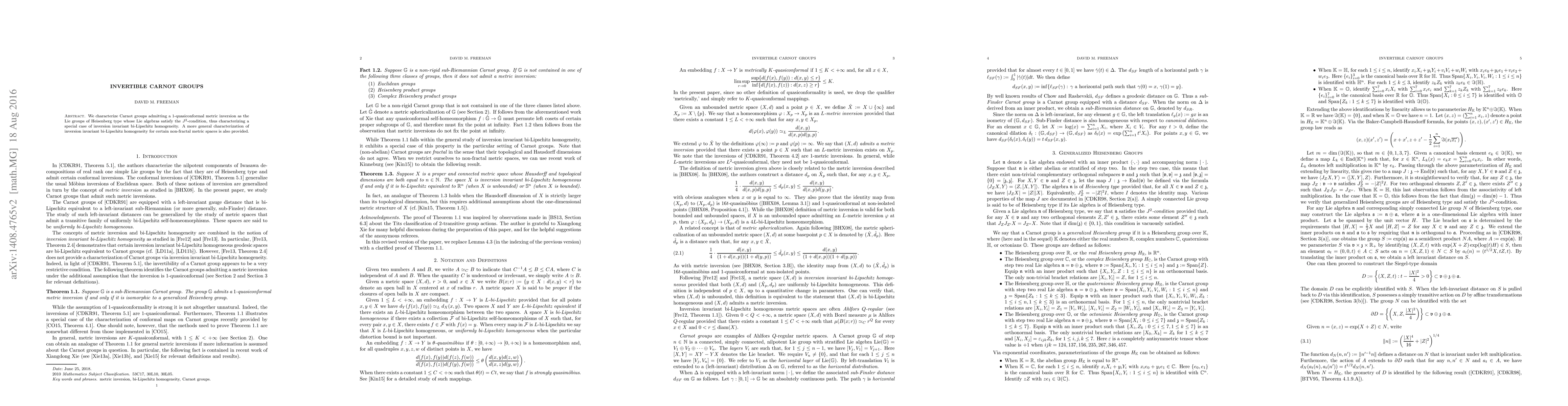 We characterize Carnot groups admitting a 1-quasiconformal metric inversion as the Lie groups of Heisenberg type whose Lie algebras satisfy the $J^2$-condition, thus characterizing a special case of inversion invariant bi-Lipschitz homogeneity. A more general characterization of inversion invariant bi-Lipschitz homogeneity for certain non-fractal metric spaces is also provided.