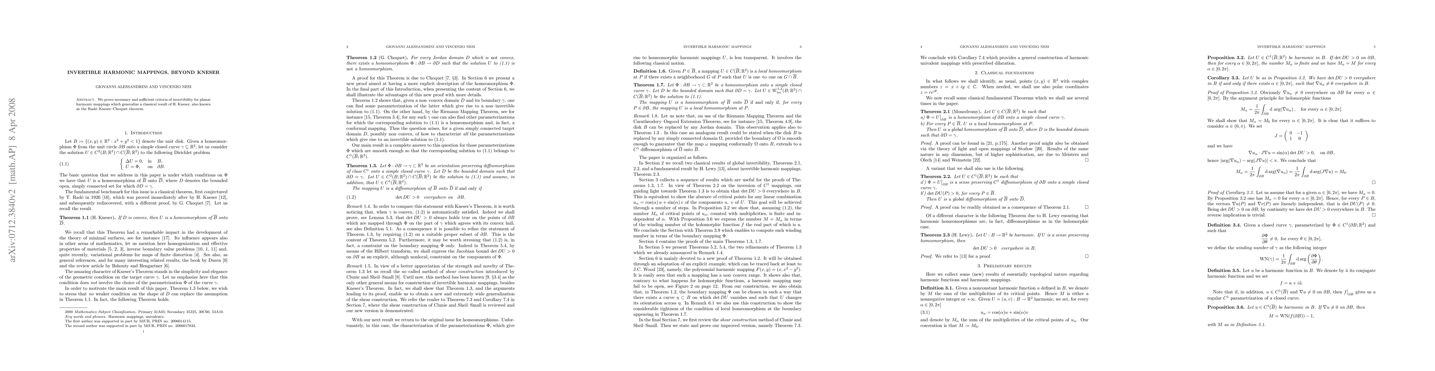 Researchers prove necessary and sufficient criteria for planar harmonic mappings to be invertible, generalizing a 1940s theorem on Radó-Kneser-Choquet.