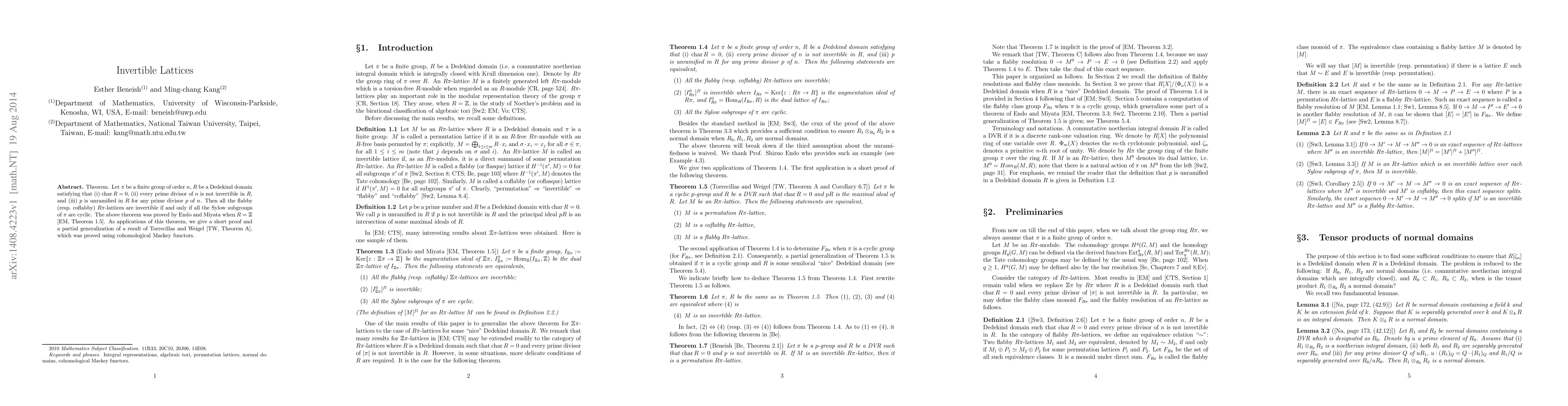 All flabby (resp. coflabby) $R heta$-lattices over a Dedekind domain $R$ with specific properties are invertible if and only if all Sylow subgroups of the finite group $ heta$ are cyclic.