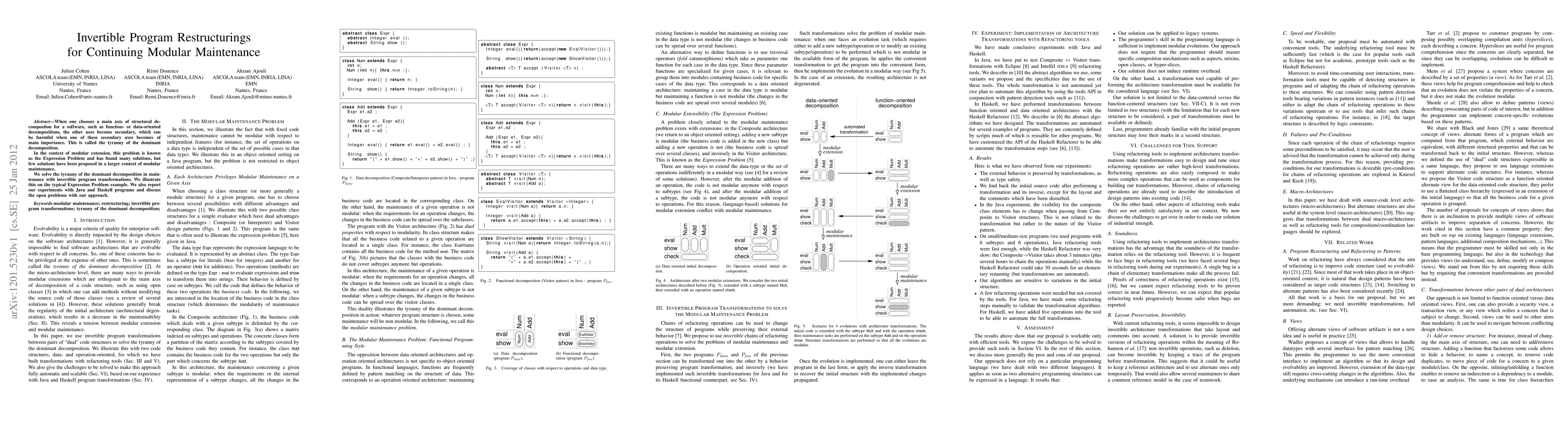 When one chooses a main axis of structural decompostion for a software, such as function- or data-oriented decompositions, the other axes become secondary, which can be harmful when one of these secondary axes becomes of main importance. This is called the tyranny of the dominant decomposition. In the context of modular extension, this problem is known as the Expression Problem and has found many solutions, but few solutions have been proposed in a larger context of modular maintenance. We solve the tyranny of the dominant decomposition in maintenance with invertible program transformations. We illustrate this on the typical Expression Problem example. We also report our experiments with Java and Haskell programs and discuss the open problems with our approach.