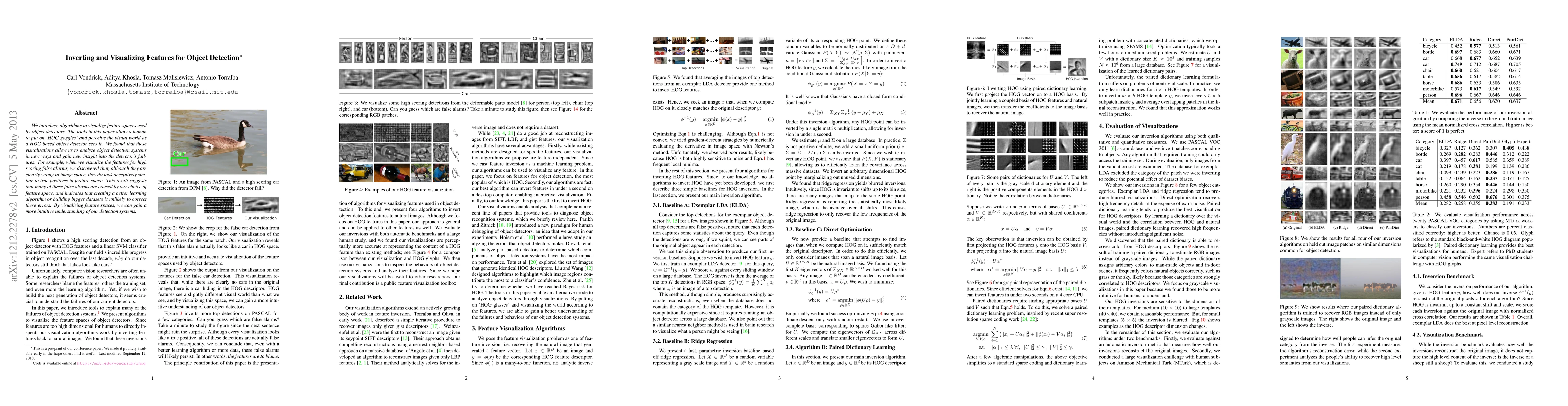 We introduce algorithms to visualize feature spaces used by object detectors. The tools in this paper allow a human to put on `HOG goggles' and perceive the visual world as a HOG based object detector sees it. We found that these visualizations allow us to analyze object detection systems in new ways and gain new insight into the detector's failures. For example, when we visualize the features for high scoring false alarms, we discovered that, although they are clearly wrong in image space, they do look deceptively similar to true positives in feature space. This result suggests that many of these false alarms are caused by our choice of feature space, and indicates that creating a better learning algorithm or building bigger datasets is unlikely to correct these errors. By visualizing feature spaces, we can gain a more intuitive understanding of our detection systems.