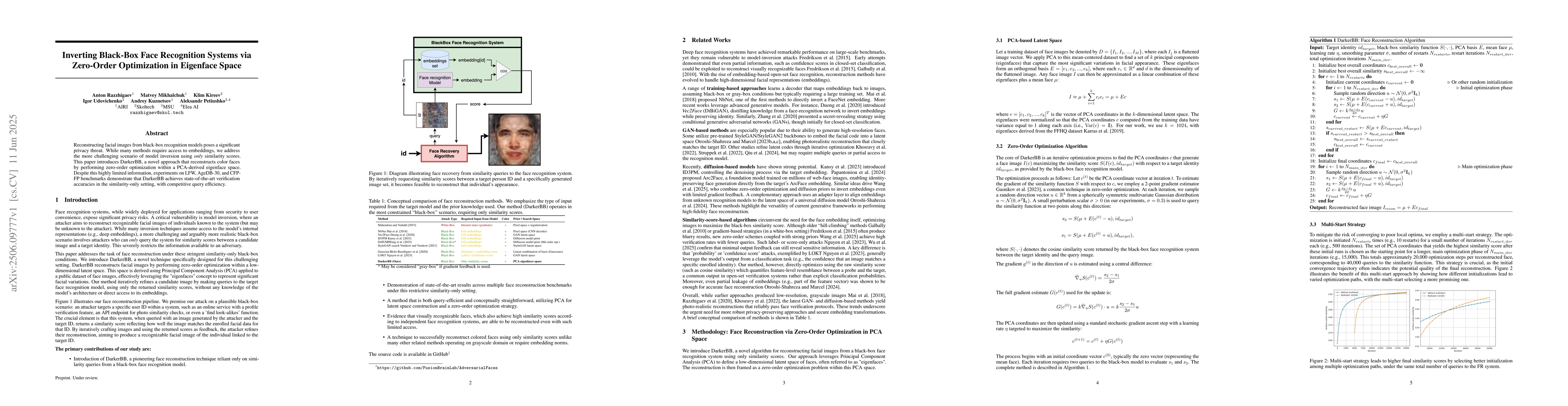 This research introduces DarkerBB, a new method to reconstruct facial images from black-box face recognition systems using only similarity scores, posing privacy risks. Despite limited information, it effectively recovers faces with high accuracy, highlighting potential vulnerabilities in biometric privacy.