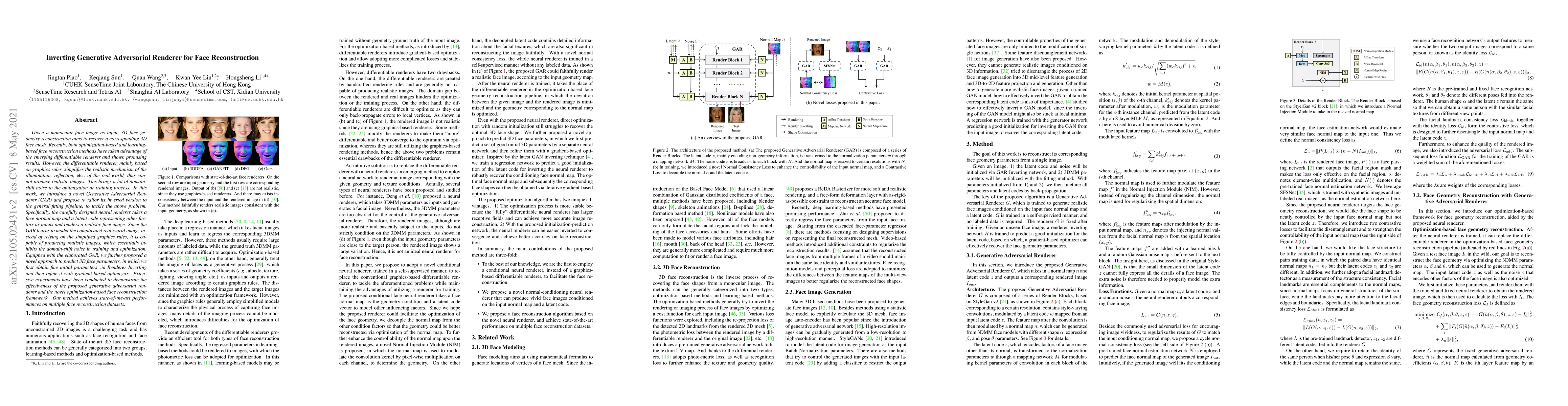 Given a monocular face image as input, 3D face geometry reconstruction aims to recover a corresponding 3D face mesh. Recently, both optimization-based and learning-based face reconstruction methods have taken advantage of the emerging differentiable renderer and shown promising results. However, the differentiable renderer, mainly based on graphics rules, simplifies the realistic mechanism of the illumination, reflection, \etc, of the real world, thus cannot produce realistic images. This brings a lot of domain-shift noise to the optimization or training process. In this work, we introduce a novel Generative Adversarial Renderer (GAR) and propose to tailor its inverted version to the general fitting pipeline, to tackle the above problem. Specifically, the carefully designed neural renderer takes a face normal map and a latent code representing other factors as inputs and renders a realistic face image. Since the GAR learns to model the complicated real-world image, instead of relying on the simplified graphics rules, it is capable of producing realistic images, which essentially inhibits the domain-shift noise in training and optimization. Equipped with the elaborated GAR, we further proposed a novel approach to predict 3D face parameters, in which we first obtain fine initial parameters via Renderer Inverting and then refine it with gradient-based optimizers. Extensive experiments have been conducted to demonstrate the effectiveness of the proposed generative adversarial renderer and the novel optimization-based face reconstruction framework. Our method achieves state-of-the-art performances on multiple face reconstruction datasets.