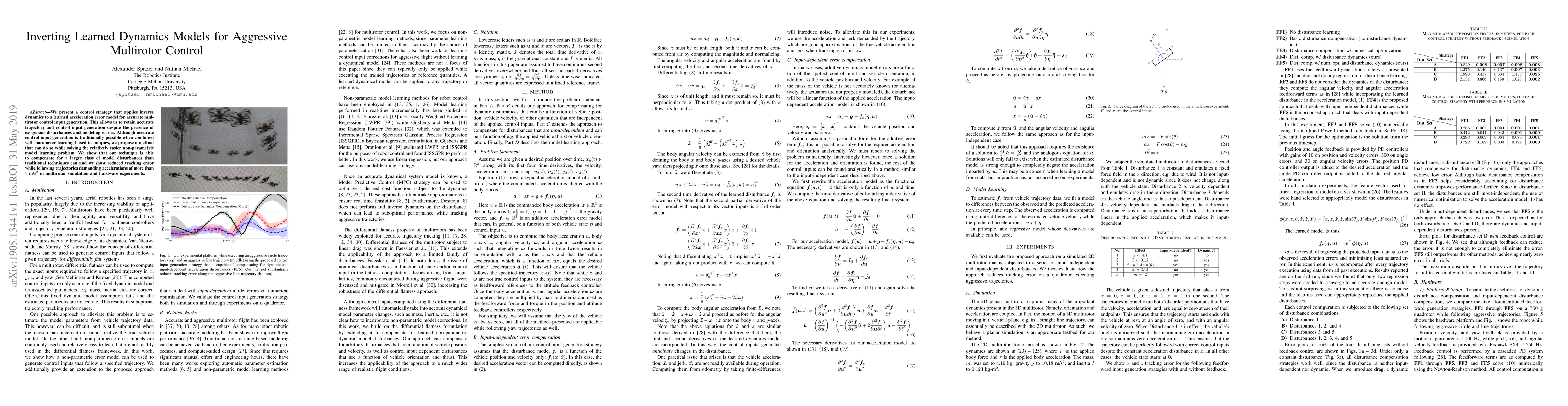 We present a control strategy that applies inverse dynamics to a learned acceleration error model for accurate multirotor control input generation. This allows us to retain accurate trajectory and control input generation despite the presence of exogenous disturbances and modeling errors. Although accurate control input generation is traditionally possible when combined with parameter learning-based techniques, we propose a method that can do so while solving the relatively easier non-parametric model learning problem. We show that our technique is able to compensate for a larger class of model disturbances than traditional techniques can and we show reduced tracking error while following trajectories demanding accelerations of more than 7 m/s^2 in multirotor simulation and hardware experiments.