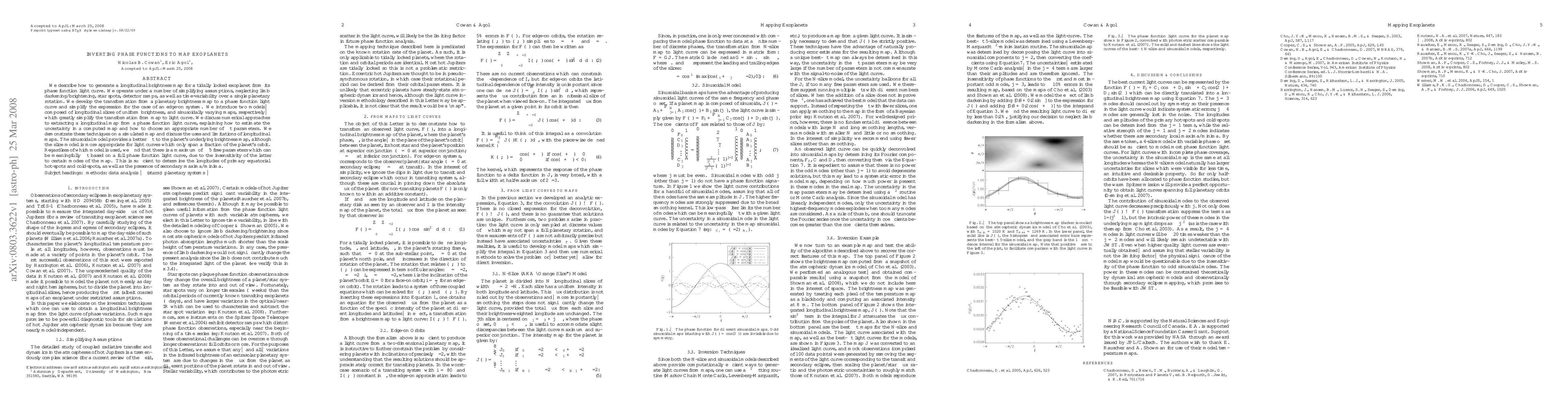 This paper details a method for generating longitudinal brightness maps of tidally locked exoplanets from their phase function light curves, introducing two simplified models for the transformation. It discusses numerical techniques for map extraction and uncertainty estimation, demonstrating the sinusoidal model's better fit to brightness maps, while noting the slice model's utility for partial light curves, with a maximum of ~5 fittable parameters due to light curve insensitivity.