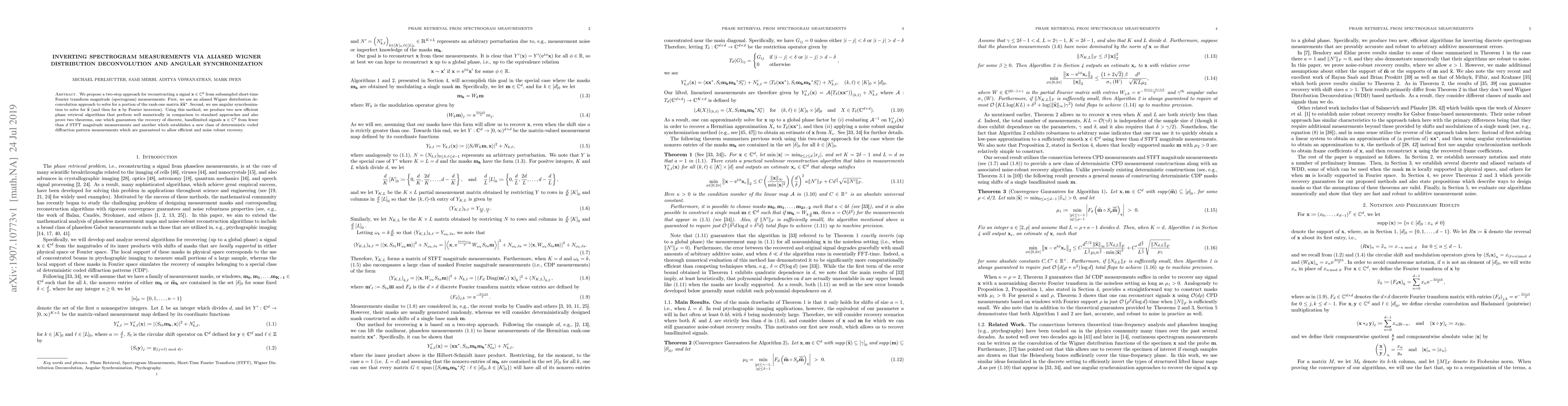 Researchers propose a two-step approach to reconstructing a signal from subsampled spectrogram measurements, using deconvolution and angular synchronization to recover the original signal with improved efficiency and accuracy.