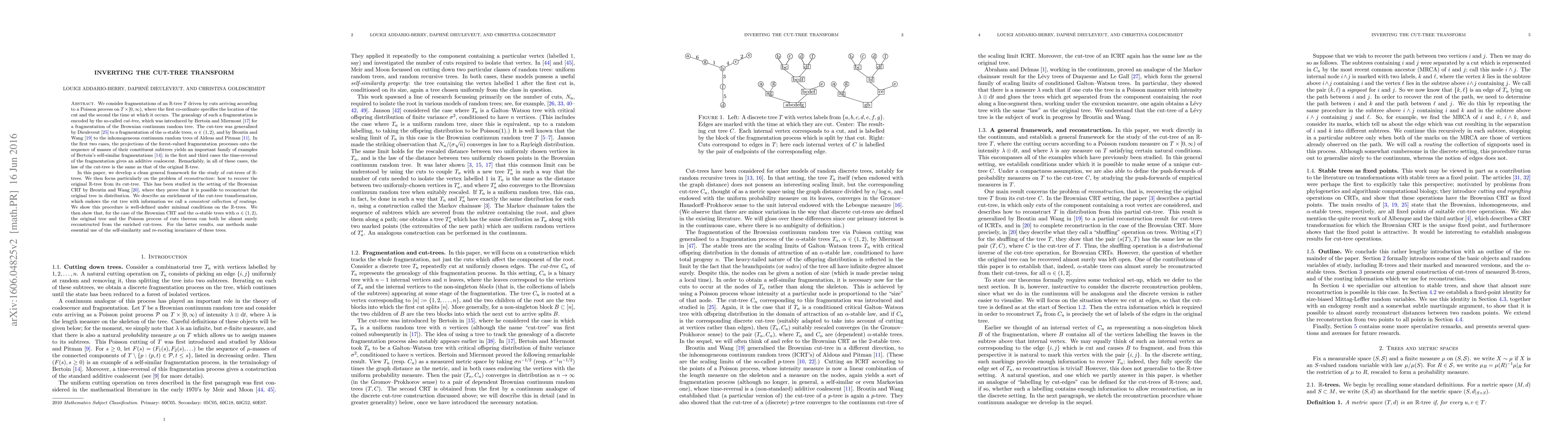 The paper develops a general framework for studying cut-trees of R-trees, focusing on the reconstruction problem of recovering the original R-tree from its cut-tree, with specific results for Brownian CRT and α-stable trees (α ∈ (1, 2)).