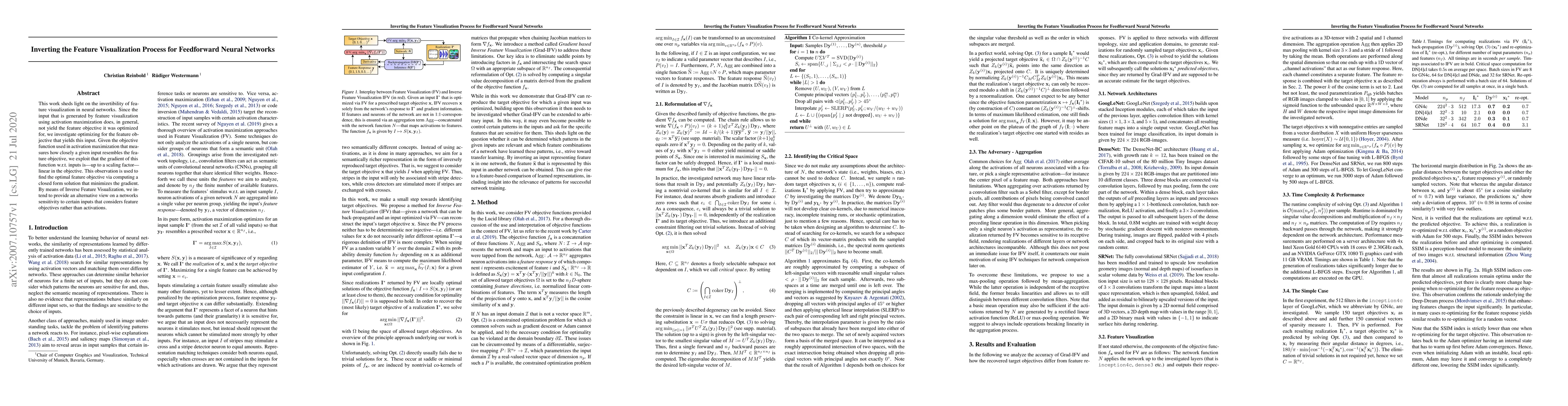 This paper explores the invertibility of feature visualization in feedforward neural networks, proposing Inverse Feature Visualization to optimize the feature objective that generates the input. It finds a closed-form solution to minimize the gradient, offering a new perspective on a network's sensitivity to inputs based on feature objectives.