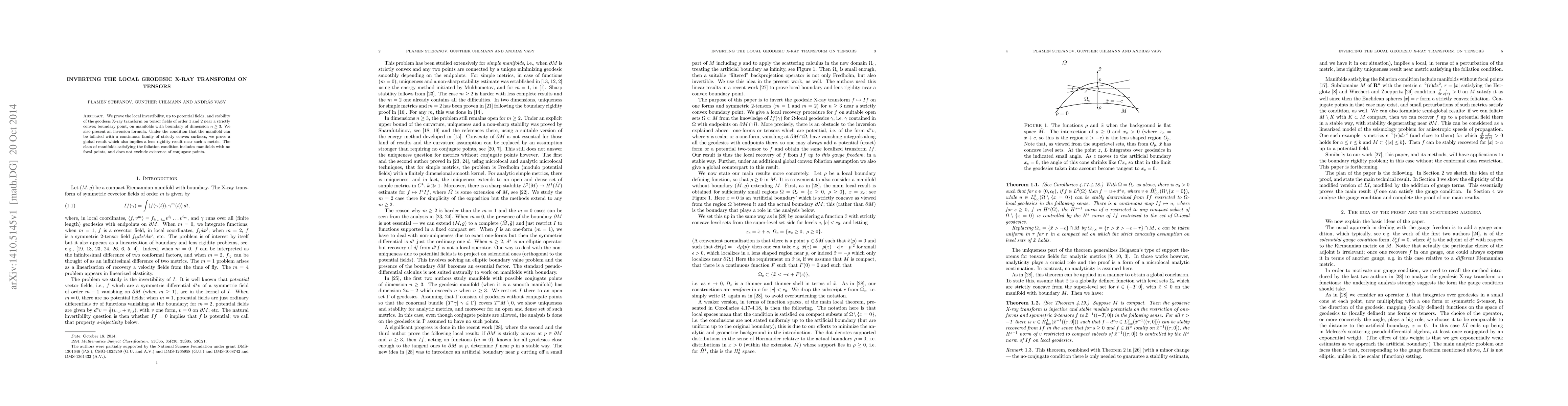 We prove the local invertibility, up to potential fields, and stability of the geodesic X-ray transform on tensor fields of order 1 and 2 near a strictly convex boundary point, on manifolds with boundary of dimension n>=3. We also present an inversion formula. Under the condition that the manifold can be foliated with a continuous family of strictly convex surfaces, we prove a global result which also implies a lens rigidity result near such a metric. The class of manifolds satisfying the foliation condition includes manifolds with no focal points, and does not exclude existence of conjugate points.