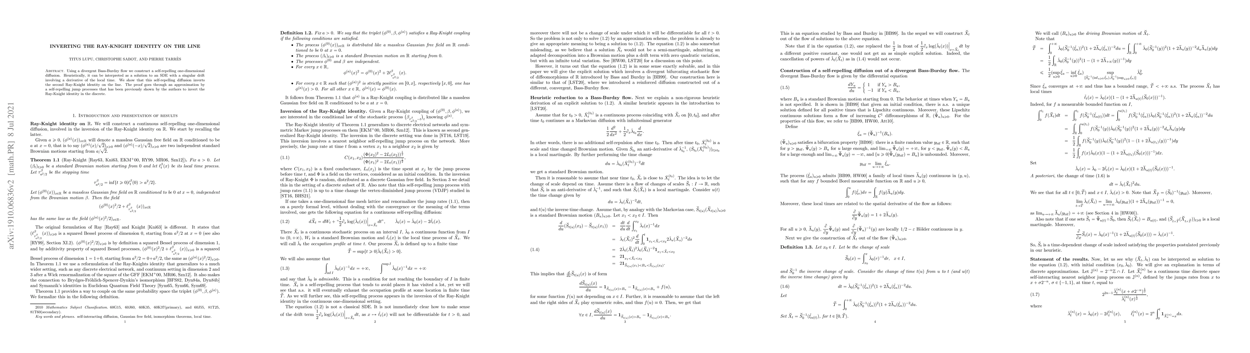 Using a divergent Bass-Burdzy flow we construct a self-repelling one-dimensional diffusion. Heuristically, it can be interpreted as a solution to an SDE with a singular drift involving a derivative of the local time. We show that this self-repelling diffusion inverts the second Ray-Knight identity on the line. The proof goes through an approximation by a self-repelling jump processes that has been previously shown by the authors to invert the Ray-Knight identity in the discrete.