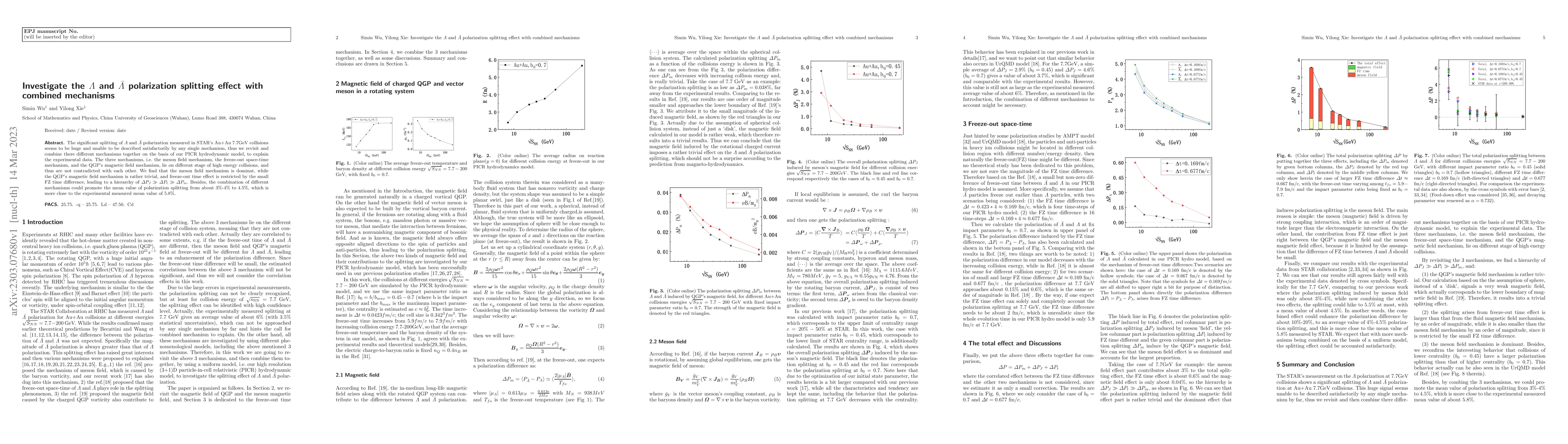 This paper investigates the polarization splitting effect in $\Lambda$ and $\bar{\Lambda}$ particles from STAR's Au+Au 7.7GeV collisions, combining three mechanisms: the meson field, the freeze-out space-time, and the QGP's magnetic field. The meson field mechanism is found dominant, improving the theoretical mean polarization splitting to 4.5%, closer to the experimental 5.8% value.