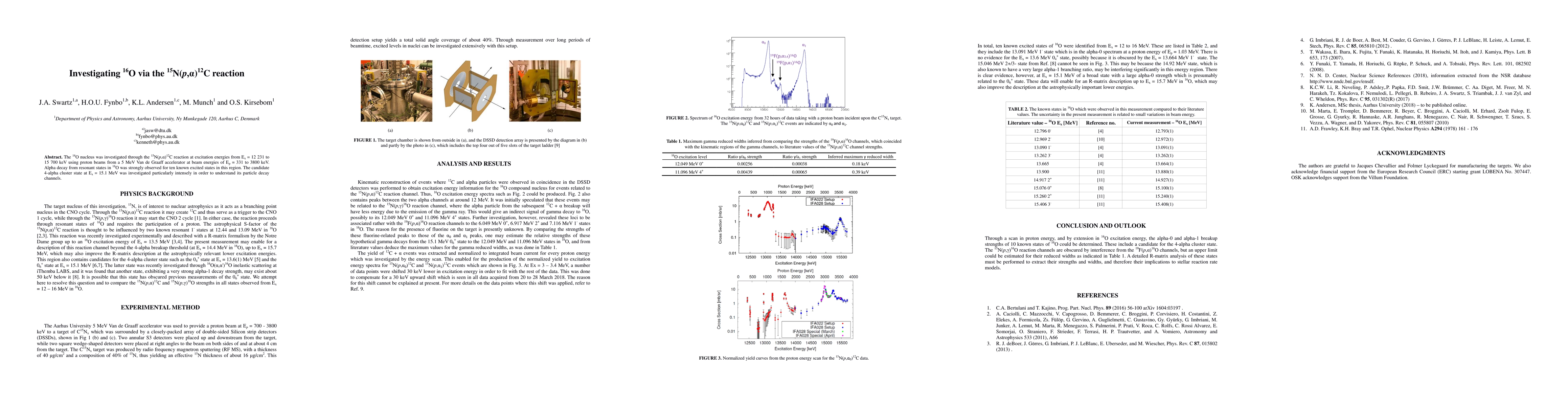 This study investigates the 16O nucleus via the 15N(p,α)12C reaction, observing alpha decay from resonant states, including a focus on the candidate 4-alpha cluster state at Ex = 15.1 MeV to understand its decay channels. The experiments were conducted using proton beams at energies ranging from 331 to 3800 keV.
