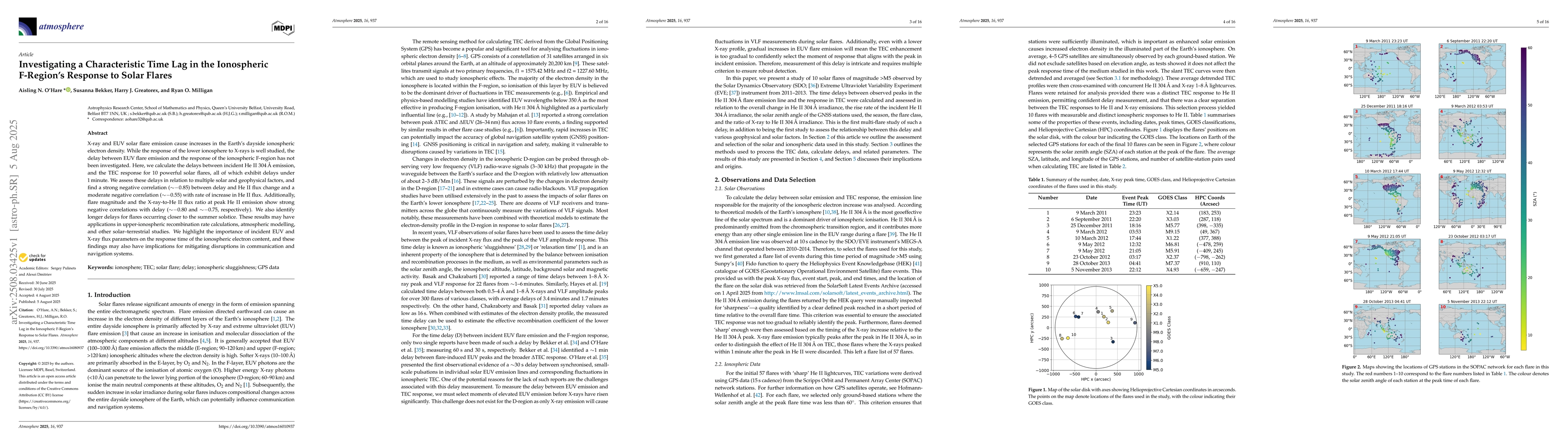 X-ray and EUV solar flare emission cause increases in the Earth's dayside ionospheric electron density. While the response of the lower ionosphere to X-rays is well studied, the delay between EUV flare emission and the response of the ionospheric F-region has not been investigated. Here, we calculate the delays between incident He II 304 Angstrom emission, and the TEC response for 10 powerful solar flares, all of which exhibit delays under 1 minute. We assess these delays in relation to multiple solar and geophysical factors, and find a strong negative correlation (-0.85) between delay and He II flux change and a moderate negative correlation (-0.55) with rate of increase in He II flux. Additionally, flare magnitude and the X-ray-to-He II flux ratio at peak He II emission show strong negative correlations (-0.80 and -0.75, respectively). We also identify longer delays for flares occurring closer to the summer solstice. These results may have applications in upper-ionospheric recombination rate calculations, atmospheric modelling, and other solar-terrestrial studies. We highlight the importance of incident EUV and X-ray flux parameters on the response time of the ionospheric electron content, and these findings may also have implications for mitigating disruptions in communication and navigation systems.