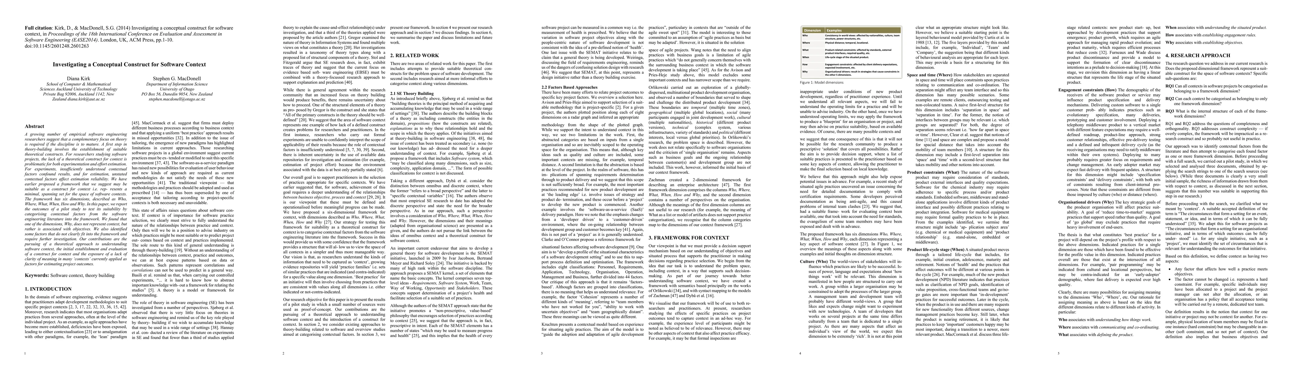 A growing number of empirical software engineering researchers suggest that a complementary focus on theory is required if the discipline is to mature. A first step in theory-building involves the establishment of suitable theoretical constructs. For researchers studying software projects, the lack of a theoretical construct for context is problematic for both experimentation and effort estimation. For experiments, insufficiently understood contextual factors confound results, and for estimation, unstated contextual factors affect estimation reliability. We have earlier proposed a framework that we suggest may be suitable as a construct for context i.e. represents a minimal, spanning set for the space of software contexts. The framework has six dimensions, described as Who, Where, What, When, How and Why. In this paper, we report the outcomes of a pilot study to test its suitability by categorising contextual factors from the software engineering literature into the framework. We found that one of the dimensions, Why, does not represent context, but rather is associated with objectives. We also identified some factors that do not clearly fit into the framework and require further investigation. Our contributions are the pursuing of a theoretical approach to understanding software context, the initial establishment and evaluation of a construct for context and the exposure of a lack of clarity of meaning in many 'contexts' currently applied as factors for estimating project outcomes.