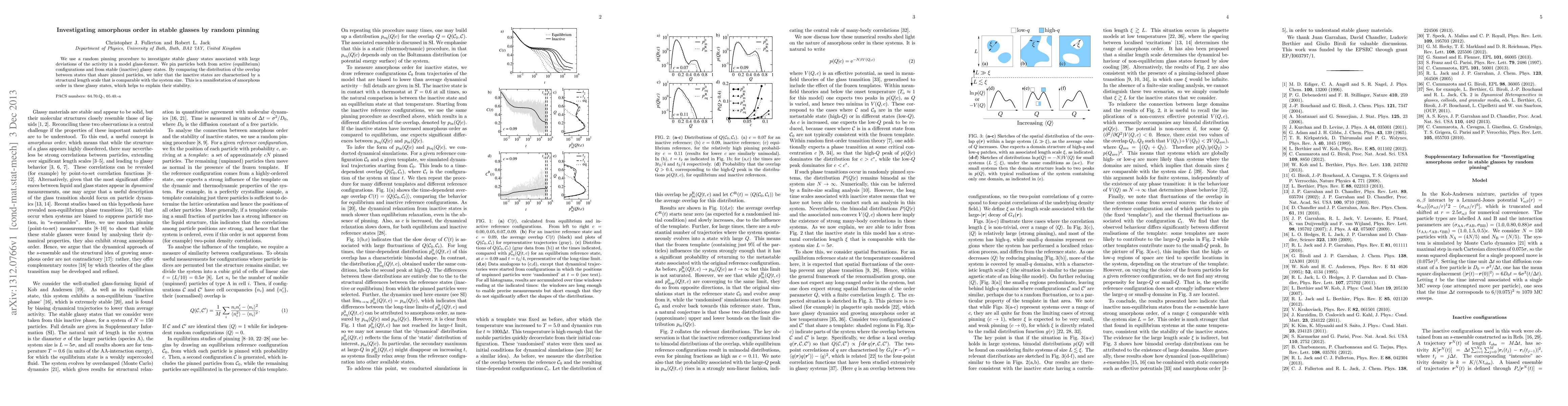 We use a random pinning procedure to investigate stable glassy states associated with large deviations of the activity in a model glass-former. We pin particles both from active (equilibrium) configurations and from stable (inactive) glassy states. By comparing the distribution of the overlap between states that share pinned particles, we infer that the inactive states are characterised by a structural length scale that is comparable with the system size. This is a manifestation of amorphous order in these glassy states, which helps to explain their stability.