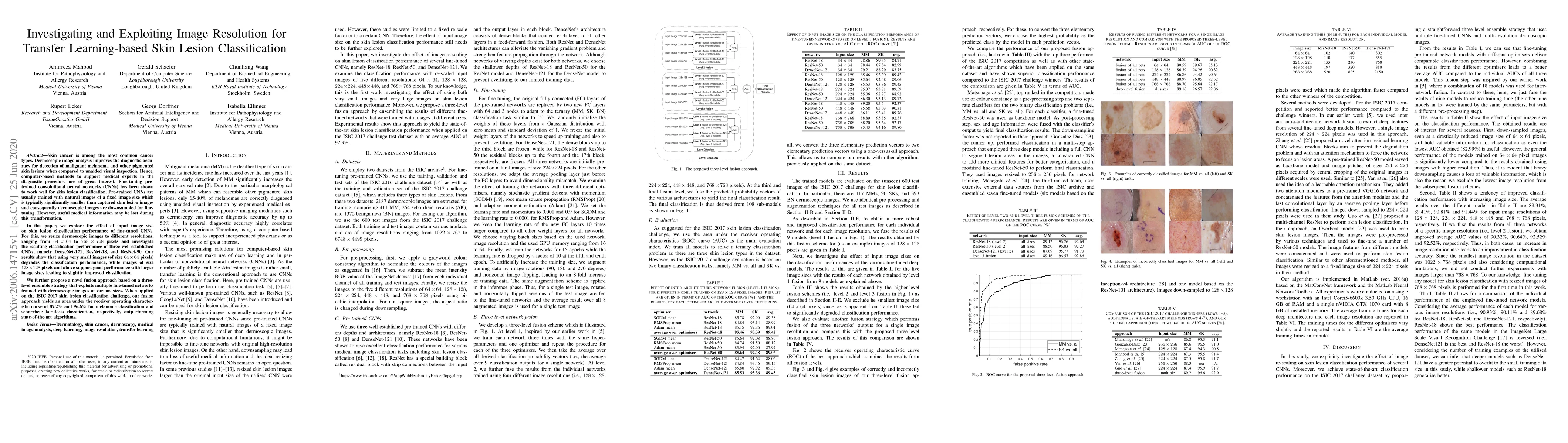 This paper investigates the impact of image resolution on the performance of transfer learning-based CNNs for skin lesion classification. It finds that while very small images degrade performance, larger resolutions (128x128 pixels and above) yield better results, with even higher resolutions providing slight improvements. A proposed fusion approach using multiple fine-tuned CNNs at various resolutions achieves superior classification performance on the ISIC 2017 dataset.