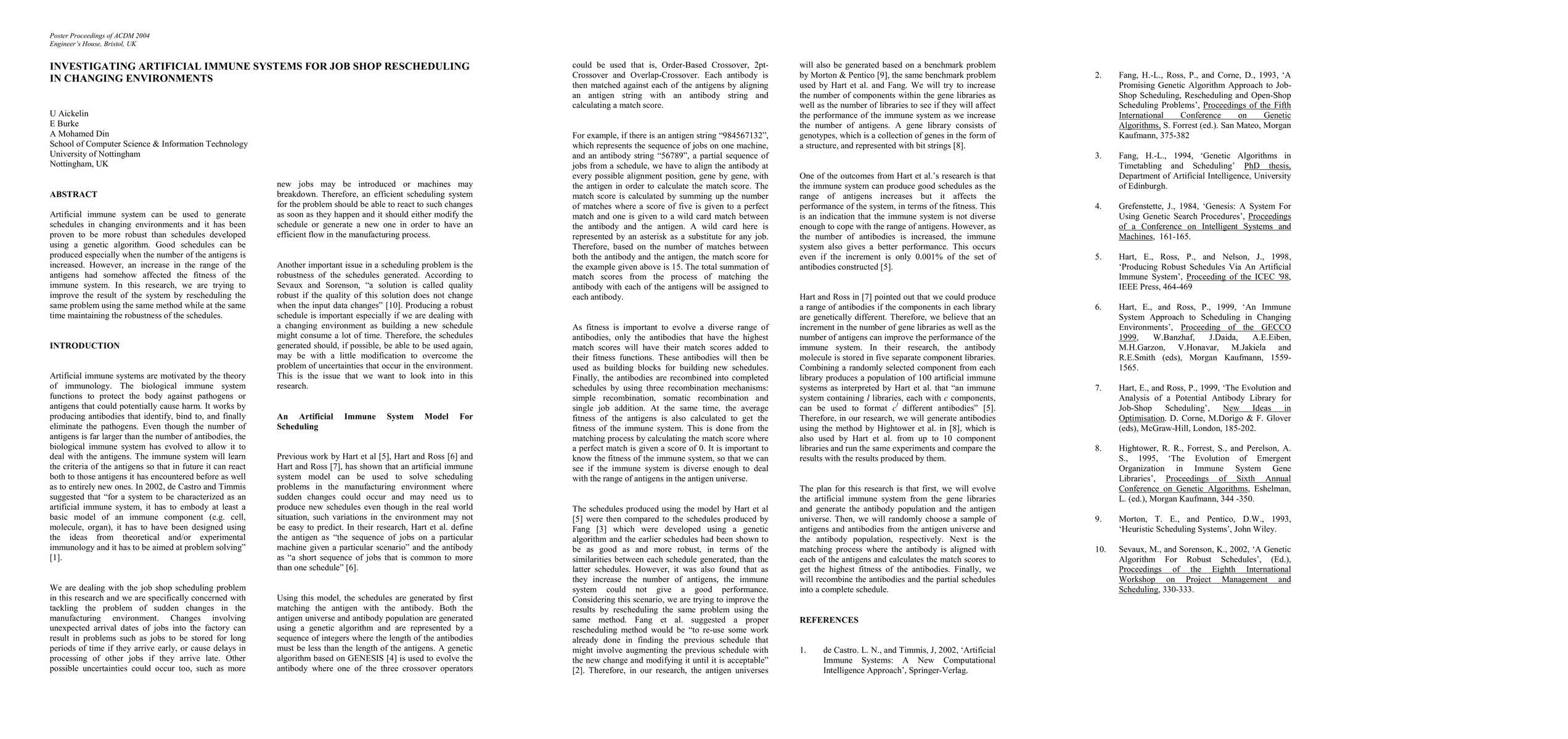 Artificial immune system can be used to generate schedules in changing environments and it has been proven to be more robust than schedules developed using a genetic algorithm. Good schedules can be produced especially when the number of the antigens is increased. However, an increase in the range of the antigens had somehow affected the fitness of the immune system. In this research, we are trying to improve the result of the system by rescheduling the same problem using the same method while at the same time maintaining the robustness of the schedules.