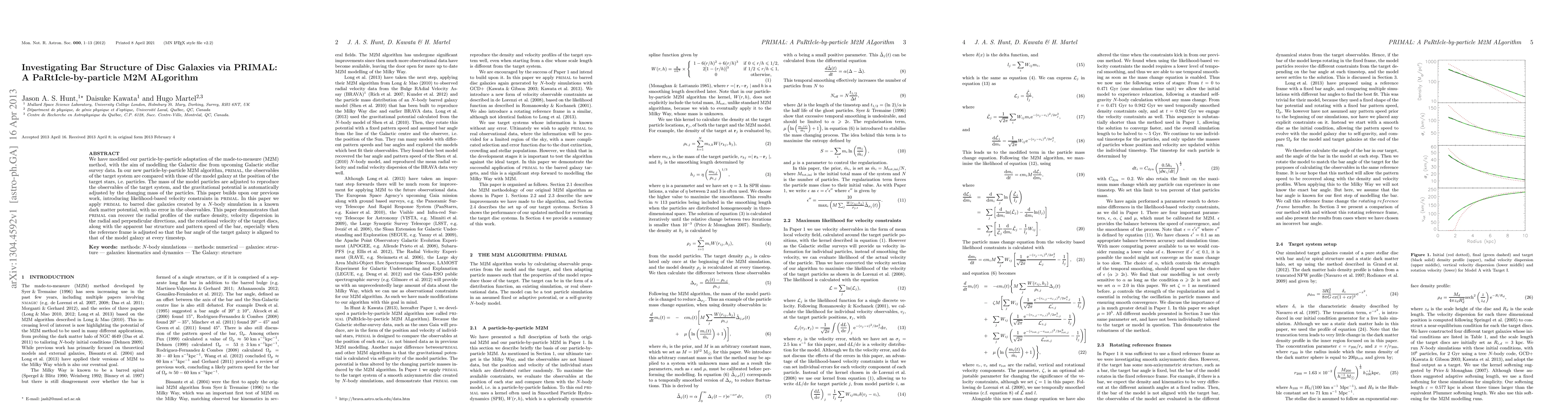 This paper introduces PRIMAL, a modified particle-by-particle M2M algorithm, to model the Galactic disc using stellar survey data. PRIMAL adjusts model particle masses and gravitational potential to match the observables of target galaxies, successfully recovering radial profiles and bar structures from simulated barred disc galaxies.