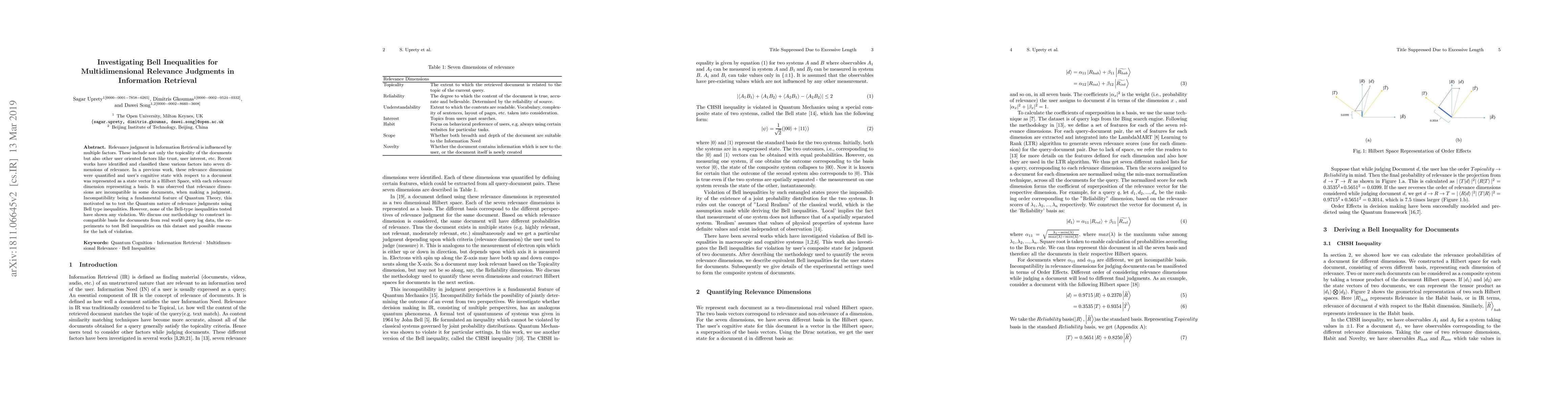 This paper investigates the quantum nature of multidimensional relevance judgments in Information Retrieval using Bell inequalities, finding no violations despite constructing incompatible basis from real-world query logs. The study explores the implications of these results and the methodology used to test the quantum-like behavior of relevance dimensions.