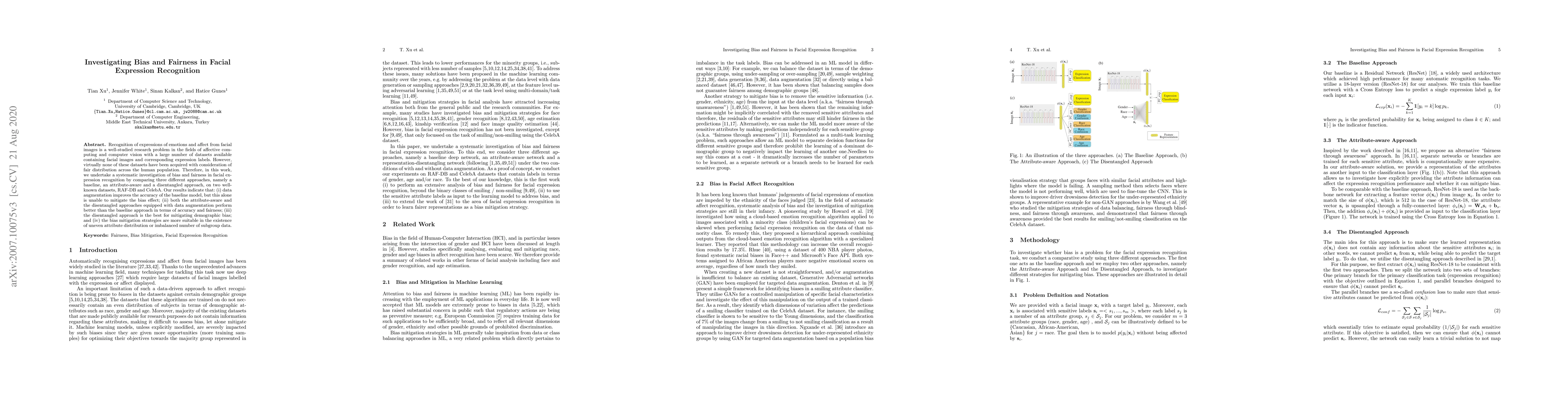 This paper investigates bias and fairness in facial expression recognition, comparing three approaches on RAF-DB and CelebA datasets. Results show that while data augmentation improves baseline accuracy, it doesn't mitigate bias; attribute-aware and disentangled approaches, especially the latter, better address bias and are more effective in imbalanced datasets.