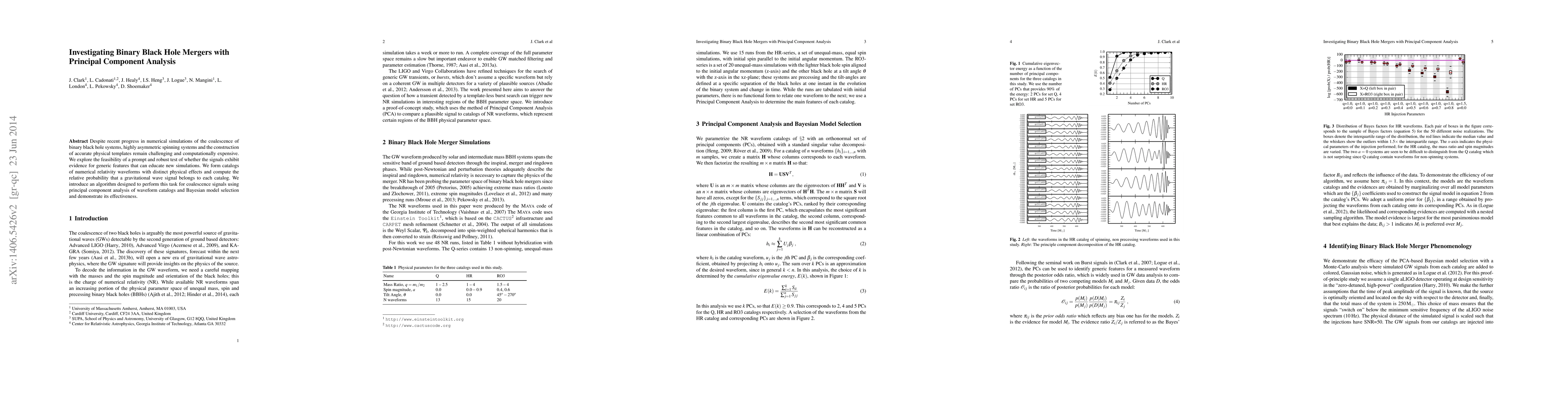 Despite recent progress in numerical simulations of the coalescence of binary black hole systems, highly asymmetric spinning systems and the construction of accurate physical templates remain challenging and computationally expensive. We explore the feasibility of a prompt and robust test of whether the signals exhibit evidence for generic features that can educate new simulations. We form catalogs of numerical relativity waveforms with distinct physical effects and compute the relative probability that a gravitational wave signal belongs to each catalog. We introduce an algorithm designed to perform this task for coalescence signals using principal component analysis of waveform catalogs and Bayesian model selection and demonstrate its effectiveness.