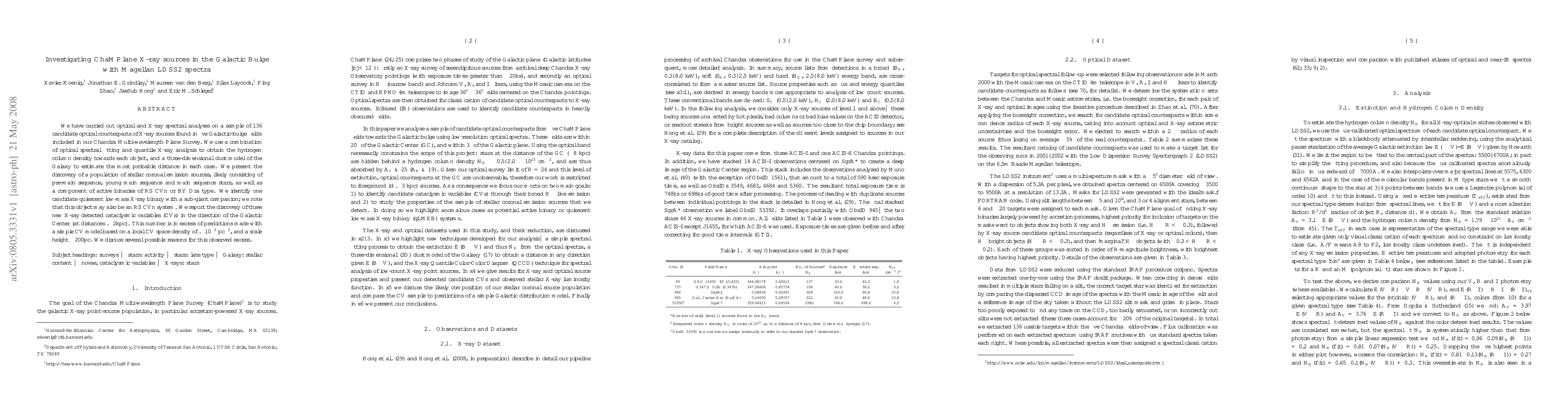 We have carried out optical and X-ray spectral analyses on a sample of 136 candidate optical counterparts of X-ray sources found in five Galactic-bulge fields included in our Chandra Multi-wavelength Plane Survey. We use a combination of optical spectral fitting and quantile X-ray analysis to obtain the hydrogen column density towards each object, and a three-dimensional dust model of the Galaxy to estimate the most probable distance in each case. We present the discovery of a population of stellar coronal emission sources, likely consisting of pre-main sequence, young main sequence and main sequence stars, as well as a component of active binaries of RS CVn or BY Dra type. We identify one candidate quiescent low-mass X-ray binary with a sub-giant companion; we note that this object may also be an RS CVn system. We report the discovery of three new X-ray detected cataclysmic variables (CVs) in the direction of the Galactic Center (at distances ~2kpc). This number is in excess of predictions made with a simple CV model based on a local CV space density of <~ 10^-5 pc^-3, and a scale height ~200pc. We discuss several possible reasons for this observed excess.